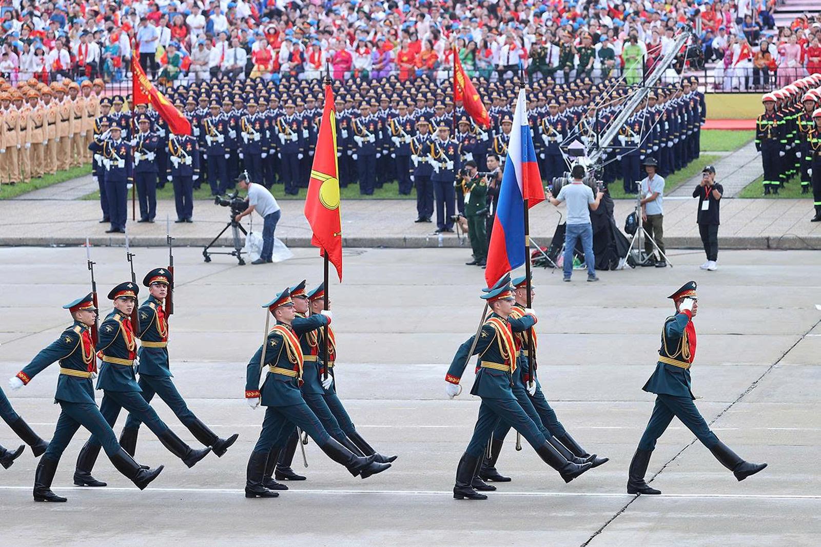 Trong lễ diễu binh, diễu hành A80, sự tham gia của quân nhân các nước Trung Quốc, Nga, Lào, Campuchia là biểu tượng cao đẹp của tinh thần đoàn kết dân tộc, đoàn kết quốc tế vì mục tiêu hòa bình, hợp tác, hữu nghị và phát triển.