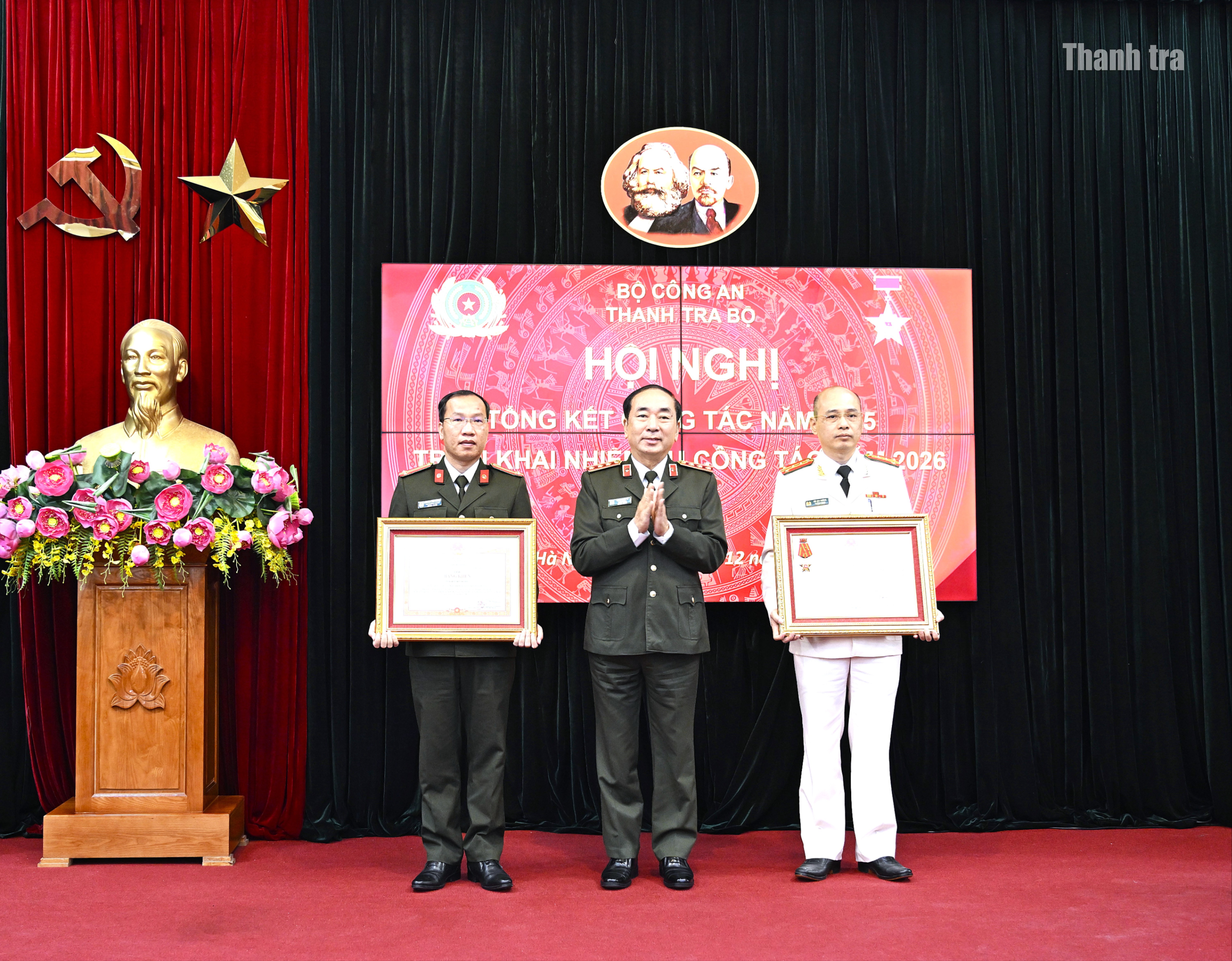 Ngày 26/12, Thanh tra Bộ Công an tổ chức Hội nghị Tổng kết công tác năm 2025 triển khai nhiệm vụ công tác năm 2026 và trao thưởng cho các tập thể, cá nhân đã hoàn thành xuất sắc nhiệm vụ được giao và được các cấp ghi nhận, khen thưởng.