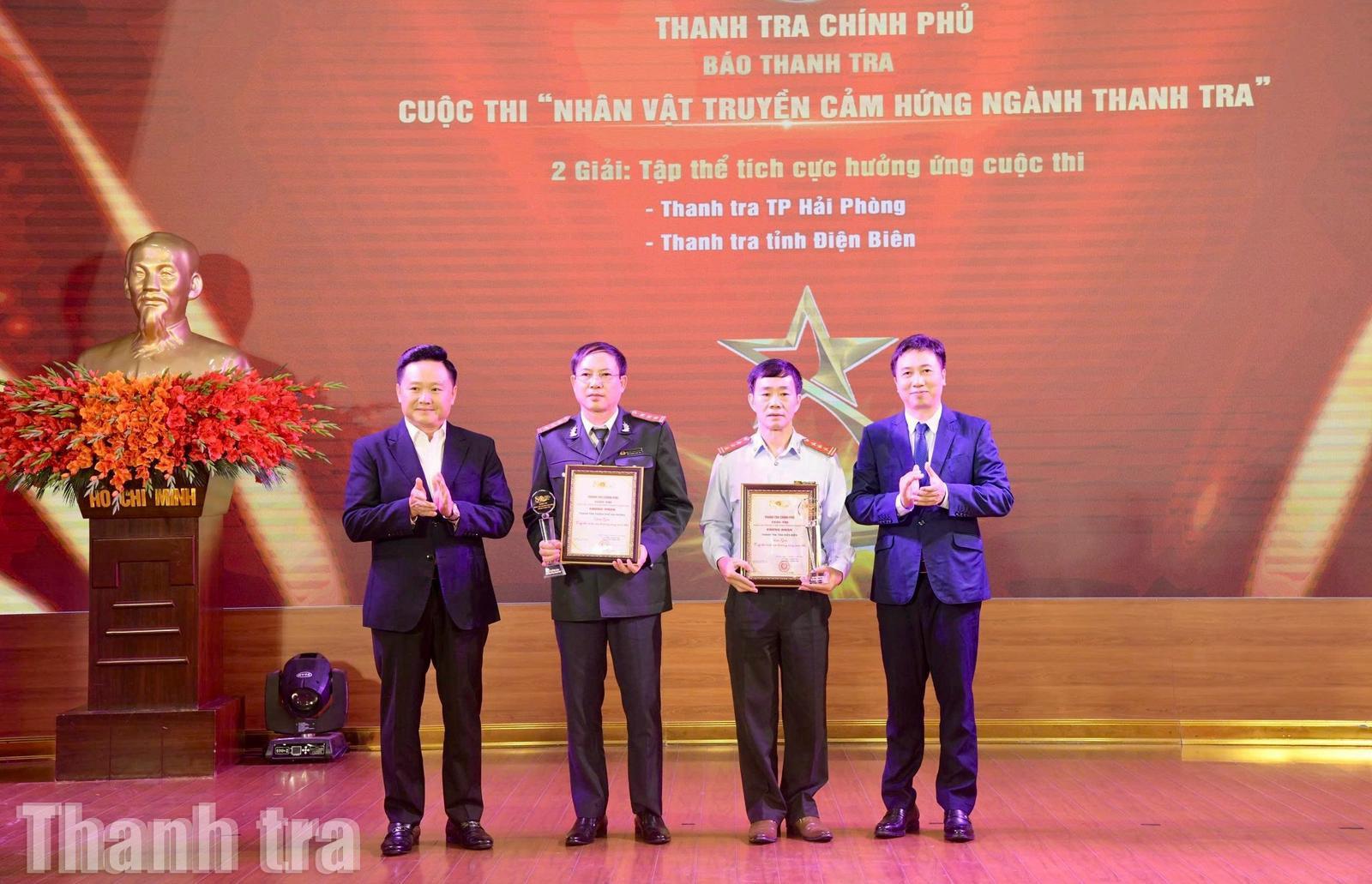 Ông Phan Văn Hùng, Phó Tổng Biên tập Báo Nhân dân và ông Phạm Hùng, Cục trưởng Cục Thanh tra, giải quyết khiếu nại, tố cáo Khu vực phía Bắc trao Giải Tập thể cho đại diện Thanh tra thành phố Hải Phòng và Thanh tra tỉnh Điện Biên, ghi nhận sự tham gia tích cực của các đơn vị.