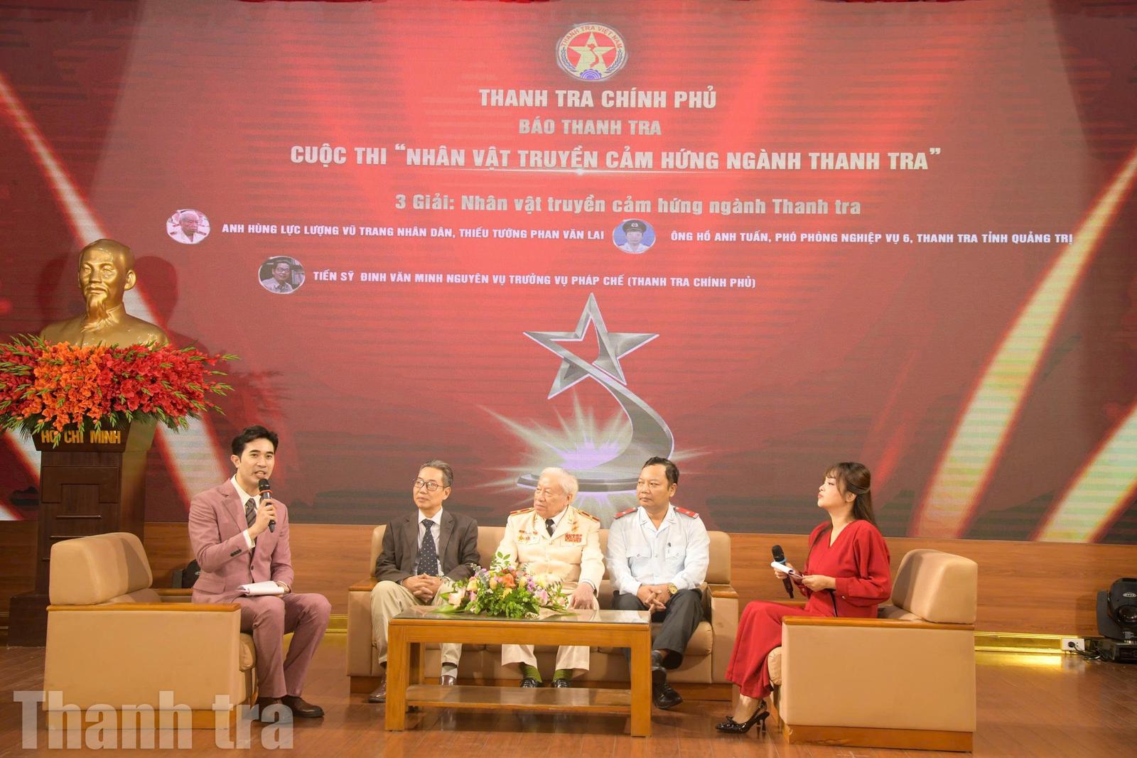 Một điểm nhấn của Lễ trao giải là Chương trình giao lưu với 3 nhân vật truyền cảm hứng: Anh hùng Lực lượng vũ trang Nhân dân Phan Văn Lai, nguyên Chánh Thanh tra Bộ Công an (ngồi giữa); ông Hồ Anh Tuấn, Phó Phòng Nghiệp vụ 6, Thanh tra tỉnh Quảng Trị (ngồi bên phải) và Tiến sĩ Đinh Văn Minh, nguyên Vụ trưởng Vụ Pháp chế, Thanh tra Chính phủ.