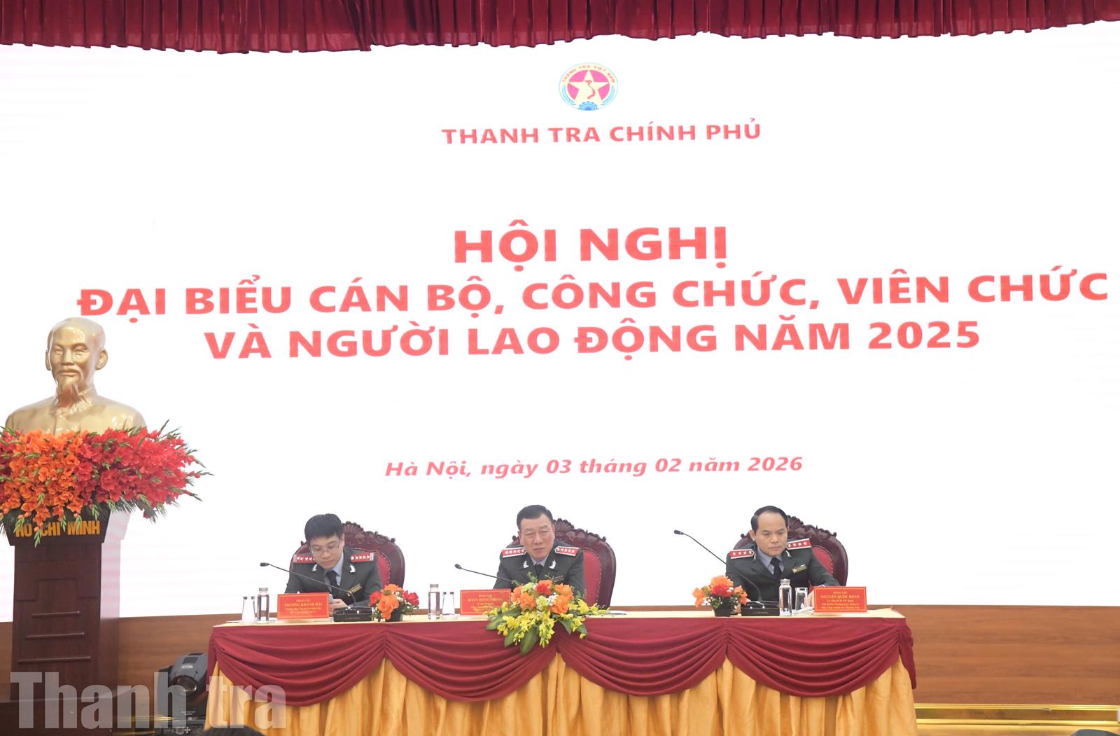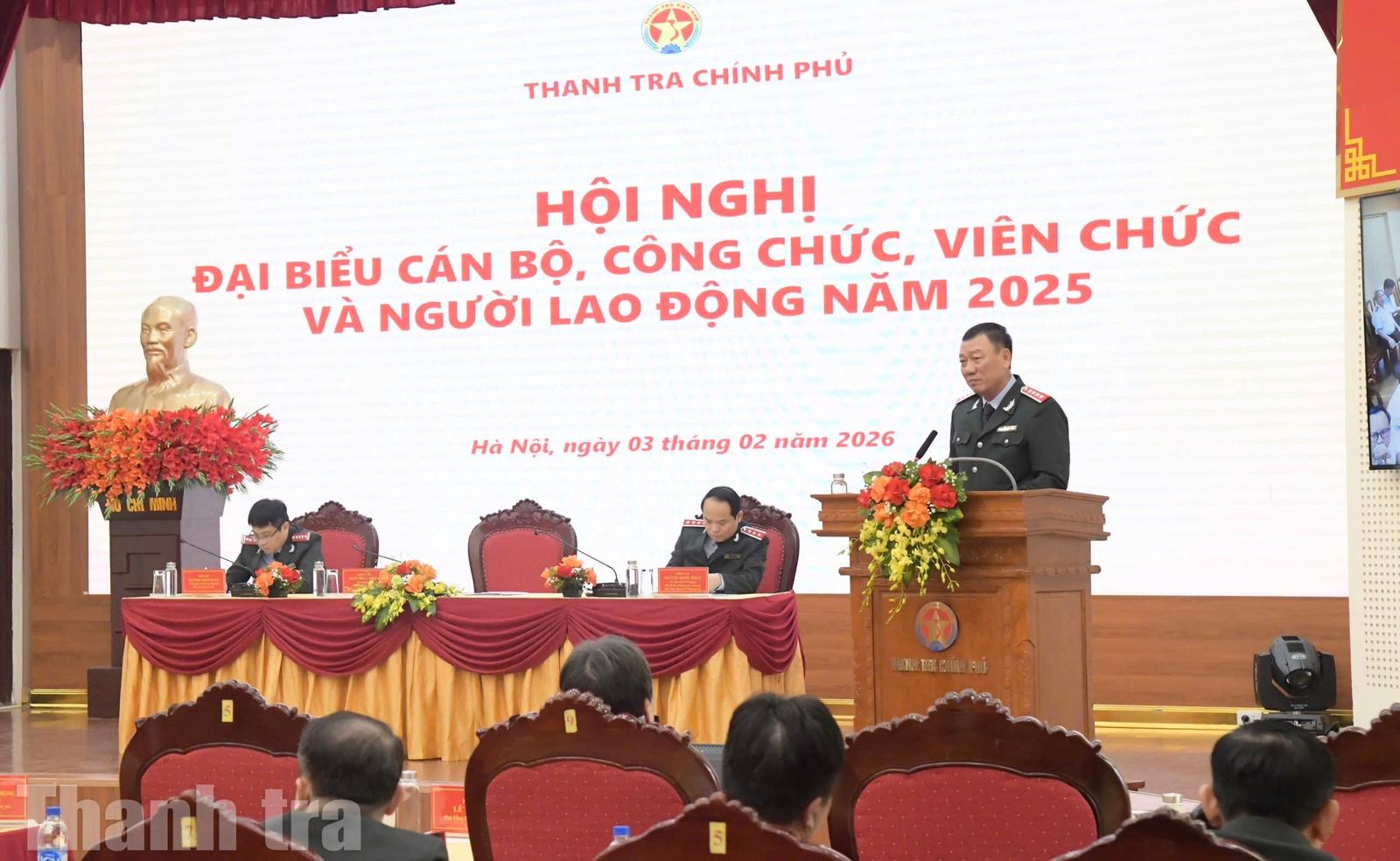 (Thanh tra) - Trong không khí phấn khởi của những ngày đầu Xuân 2026, chiều ngày 3/2, Thanh tra Chính phủ đã long trọng tổ chức Hội nghị cán bộ, công chức, viên chức và người lao động năm 2025. Bí thư Đảng ủy, Tổng Thanh tra Chính phủ Đoàn Hồng Phong dự và phát biểu chỉ đạo hội nghị.