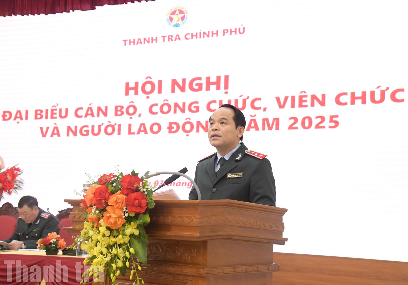 Ủy viên Trung ương Đảng, Phó Tổng Thanh tra Thường trực Nguyễn Quốc Đoàn trình bày báo cáo đánh giá toàn diện kết quả thực hiện chức năng, nhiệm vụ năm 2025. Ảnh: Trần Huy