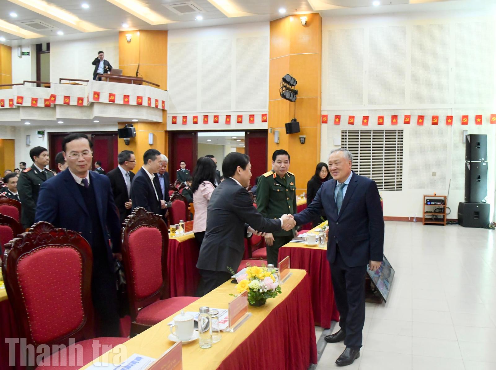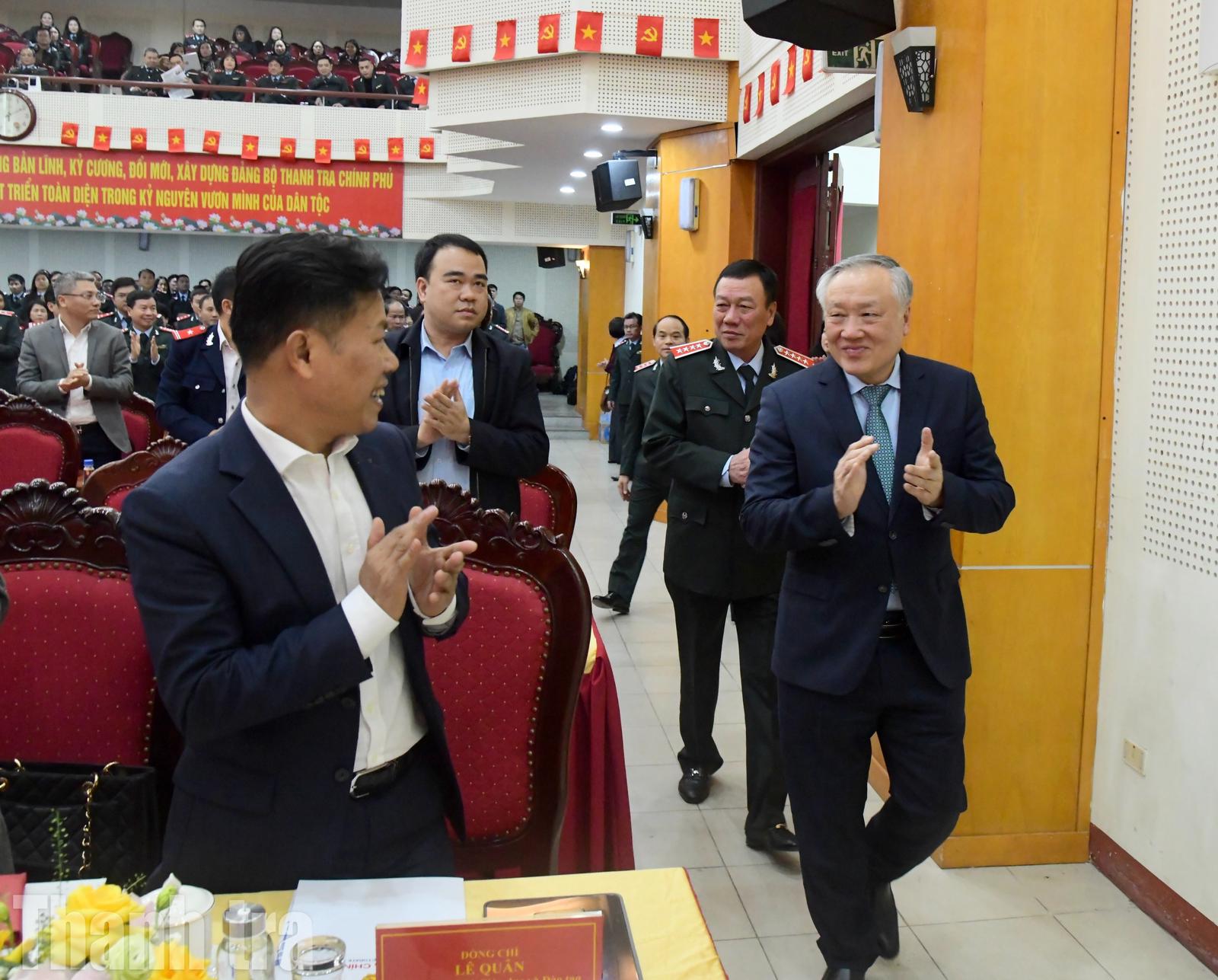 Các đại biểu chào mừng Phó Thủ tướng Thường trực Chính phủ Nguyễn Hòa Bình dự hội nghị. Ảnh: Huy Trần