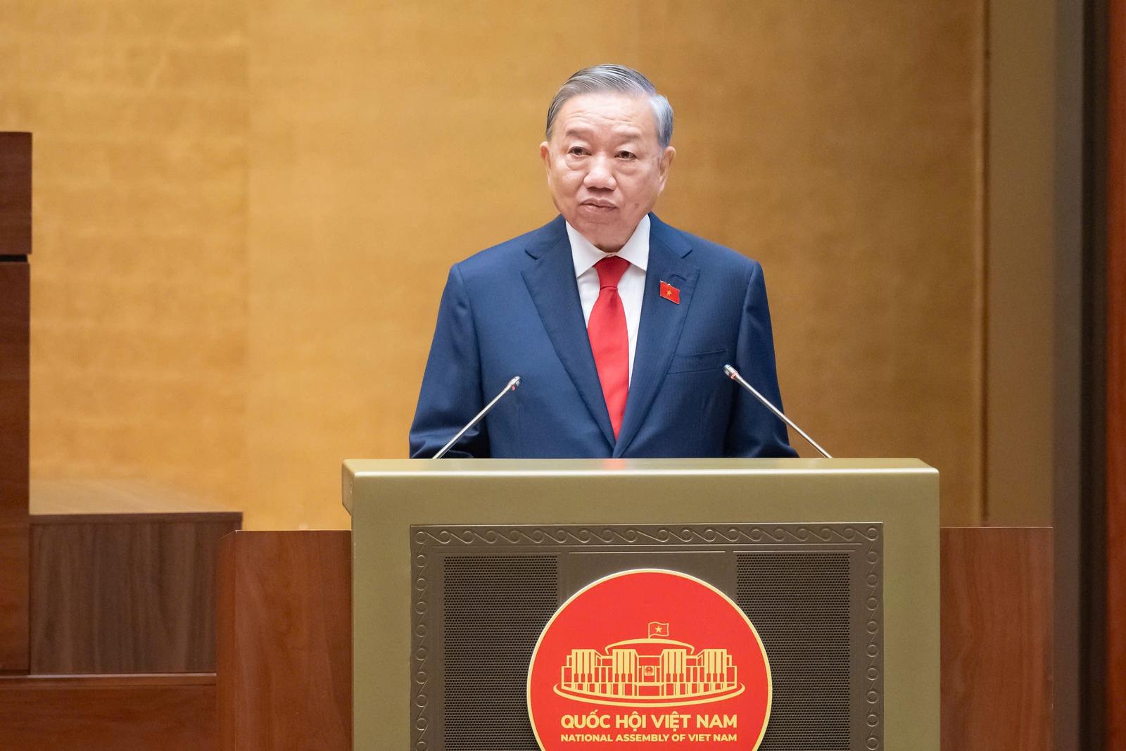 Sau khi được bầu, Chủ tịch nước Tô Lâm làm lễ tuyên thệ nhậm chức. Ảnh: Đ.X
