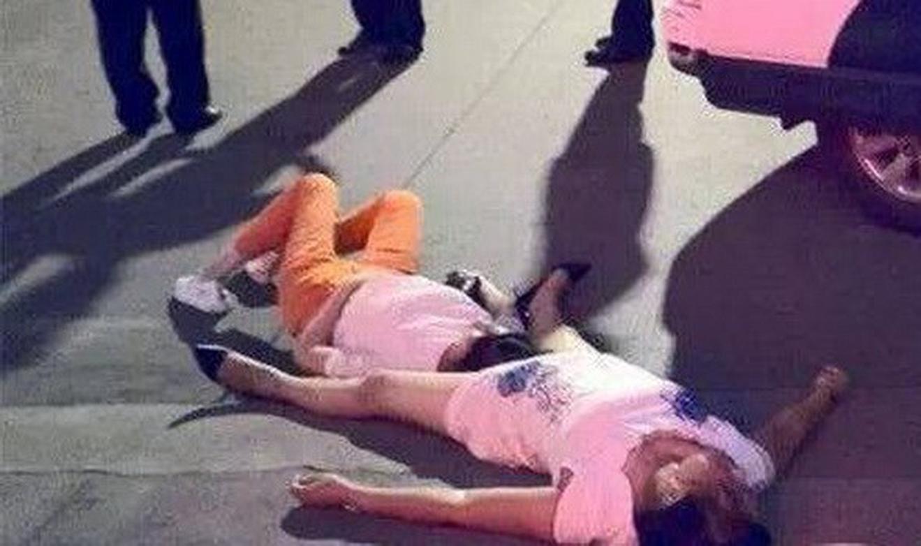 Hai người phụ nữ ngất xỉu trên đường. (Nguồn: sina.com.cn)