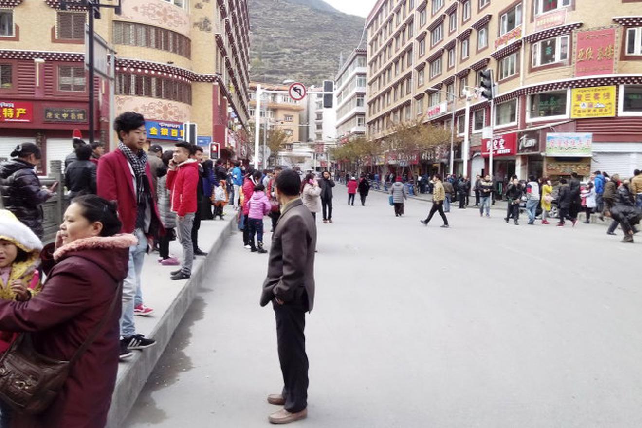 Người dân tại thị trấn Kangding tỉnh Tứ Xuyên đổ ra đường sau khi trận động đất 6.3 độ Richter khiến các tòa nhà rung lắc dữ dội - Ảnh: Reuters