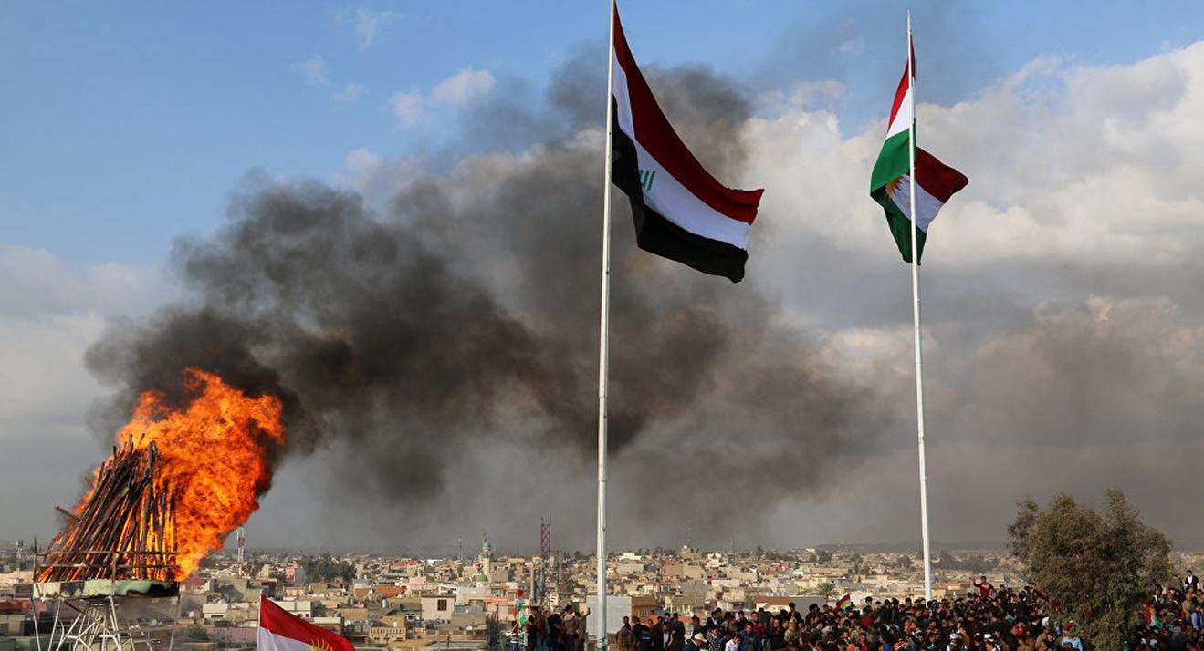Cờ của Iraq và khu tự trị Kurdistan đang tung bay trong một lễ hội ở thành phố Kirkuk, cách Thủ đô Baghdad 240 km về phía Bắc