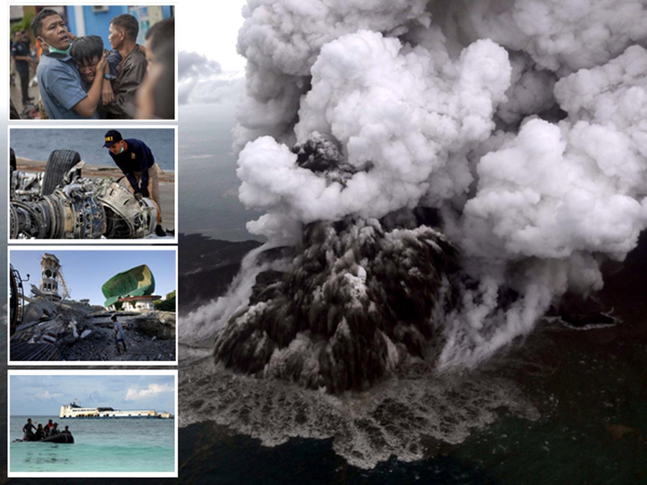 Sóng thần eo biển Sunda: Quang cảnh nhìn từ trên không của núi lửa Anak Krakatau khi phun trào tại eo biển Sunda ở Nam Lampung, Indonesia, ngày 23/12. Ít nhất 222 người chết và hàng trăm người bị thương trong thảm họa xảy ra vào tối 22/12 ở Indonesia. Ảnh: Reuters.