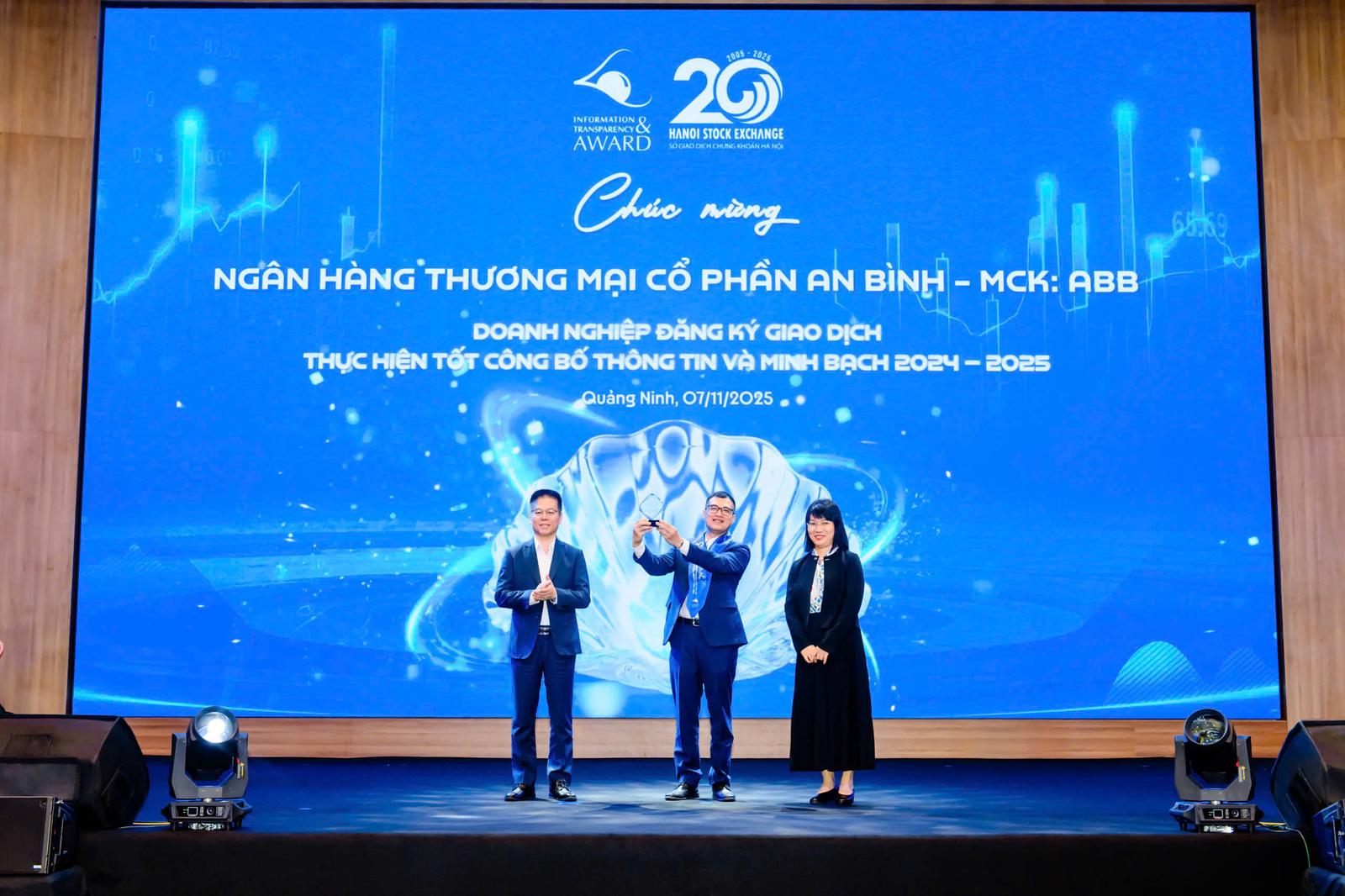 Ngày 07/11/2025, ABBANK được vinh danh trong Top 10 Doanh nghiệp đăng ký giao dịch thực hiện tốt công bố thông tin và minh bạch 2024 – 2025 do HNX công bố