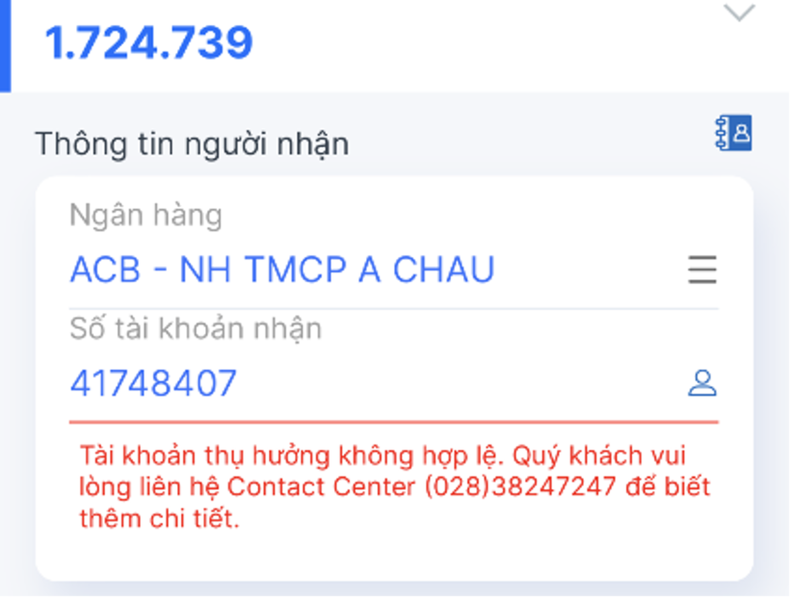 Đã có nhiều trường hợp Khách hàng bị lừa bởi hình thức giả danh giao hàng và đề nghị chuyển khoản thanh toán. Tuy nhiên khi khách hàng thao tác chuyển tiền thì thì hệ thống ACB ONE hiển thị cảnh báo tài khoản không hợp lệ, ngăn chặn khách hàng thực hiện giao dịch này. Hay một hình thức khác cũng khá phổ biến là giả mạo website, trang thông tin lấy danh nghĩa Mặt trận Tổ quốc Việt Nam để huy động, kêu gọi từ thiện, ủng hộ các tỉnh, thành phố bị ảnh hưởng cơn bão số 3, ACB đã chủ động ngăn chặn bằng hệ thống nhận diện thao tác chuyển khoản bất thường và ngưng khách hàng thực hiện những giao dịch bị lừa.