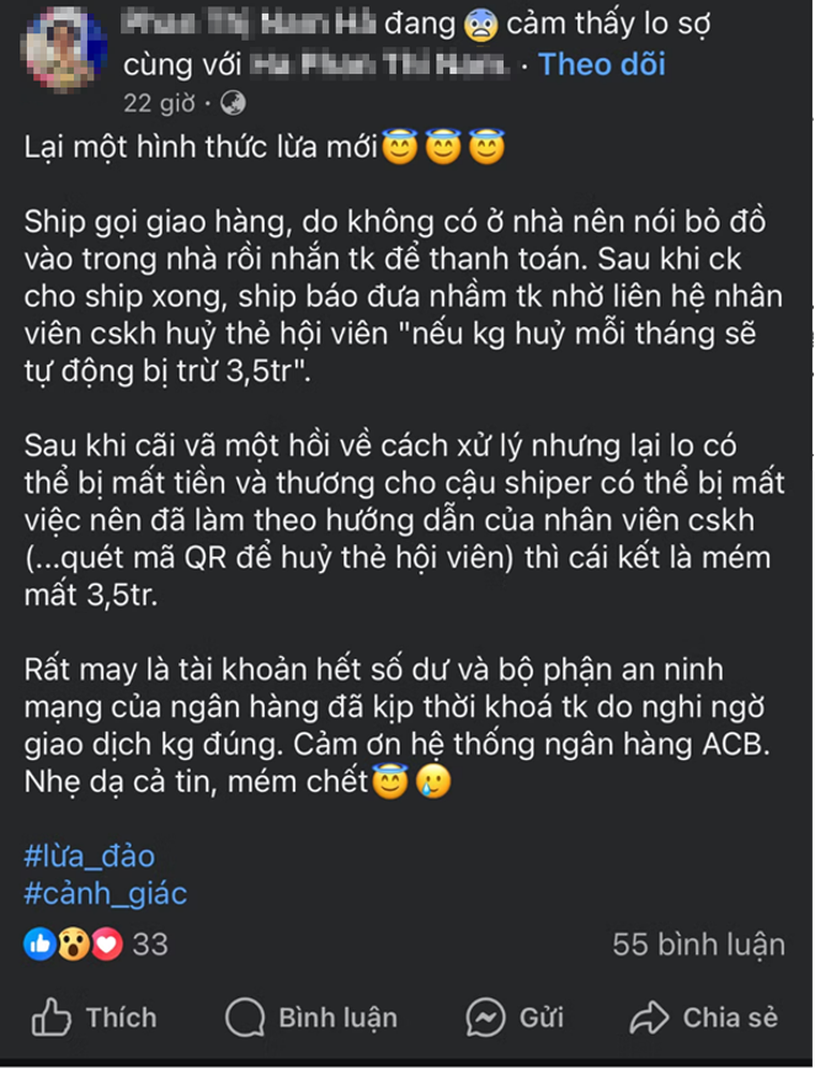 Chị P.H. Nam cho biết: “Rất may là hệ thống của ngân hàng đã kịp thời chặn tài khoản do nghi ngờ giao dịch không đúng. Cảm ơn ACB. Nhẹ dạ cả tin suýt nữa thì mất hết tiền.”. Một Khách hàng khác cũng bị Facebook giả mạo người thân vay tiền, nhưng ngân hàng kịp thời chặn giao dịch nên tài khoản được bảo vệ: “ Mình vừa thao tác chuyển tiền vào tài khoản của người thân nhờ gửi thì bị ACB chặn vì nghi có giao dịch với tài khoản lừa đảo. Lên hỏi thì mới biết là bị lừa, hệ thống ACB có công nghệ nhận diện rủi ro qua hành vi giao dịch. Cũng may ACB bảo mật tốt không là không biết bị lừa bao nhiêu tiền.”.