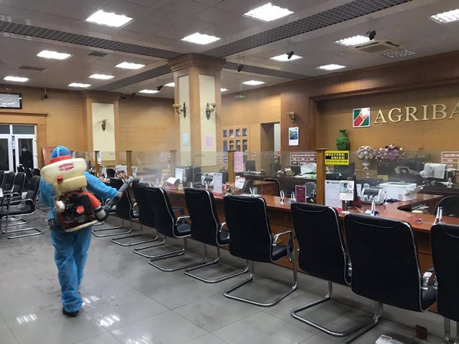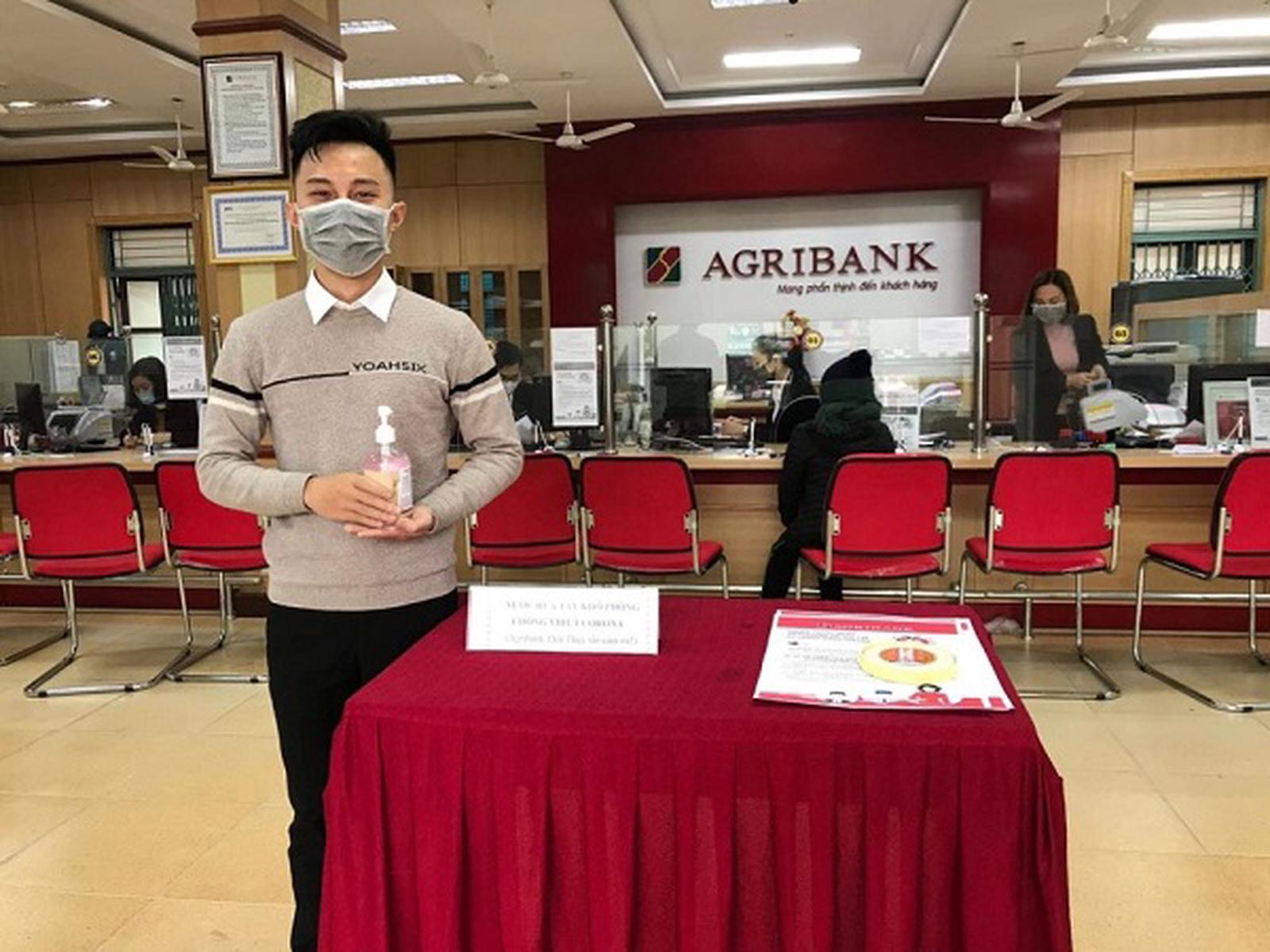 Song song đó, Ban Chỉ đạo phòng, chống dịch bệnh tại từng chi nhánh phối hợp với cơ quan y tế địa phương tiến hành phun hóa chất khử trùng diệt khuẩn. Với đặc thù là nơi tập trung lượng khách hàng đến giao dịch hàng ngày, nên 100% phòng giao dịch, chi nhánh trên toàn hệ thống đều đã thực hiện các biện pháp phòng chống dịch Covid-19 như phun hóa chất khử trùng tại cơ quan cũng như các địa điểm, máy móc công cụ có nguy cơ lây nhiễm cao: Phòng làm việc, sảnh công cộng, thang máy, khu vực đặt máy ATM, phòng vệ sinh, phòng họp... Trang bị dung dịch rửa tay diệt khuẩn tại khu vực vệ sinh và sảnh giao dịch cho khách hàng (bao gồm khẩu trang miễn phí cho khách hàng), bảo đảm an toàn sức khỏe cho cán bộ, nhân viên và cho khách hàng khi đến giao dịch với Agribank.