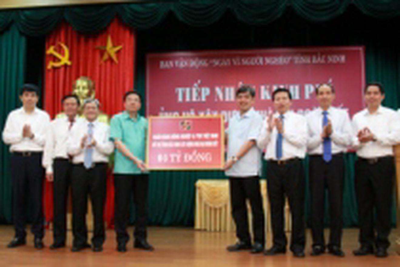 (Thanh tra)- Sáng nay 22/4/2016, Chủ tịch Hội đồng Thành viên Agribank Trịnh Ngọc Khánh vừa trao biểu trưng 5 tỷ đồng từ Agribank ủng hộ Quỹ Vì người nghèo để xây dựng Nhà đại đoàn kết cho các hộ gia đình chính sách, hộ nghèo... tại 5 huyện thuộc tỉnh Bắc Ninh.