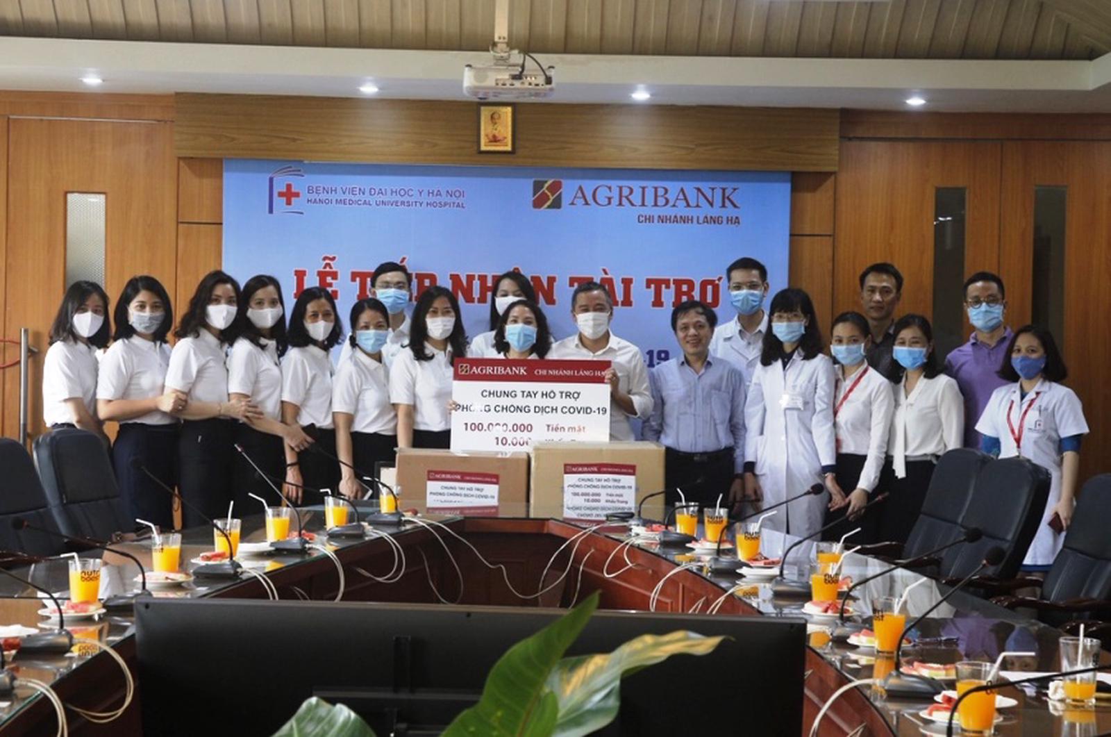 Hình ảnh các chi nhánh Agribank (Tây Hồ, Láng Hạ, Bắc Giang…) trao ủng hộ kinh phí, trang thiết bị y tế cho các lực lượng chống dịch, chính quyền địa phương, một lần nữa khẳng định sự cảm phục và động viên "chiến sỹ" trong công tác phòng, chống dịch COVID - 19.