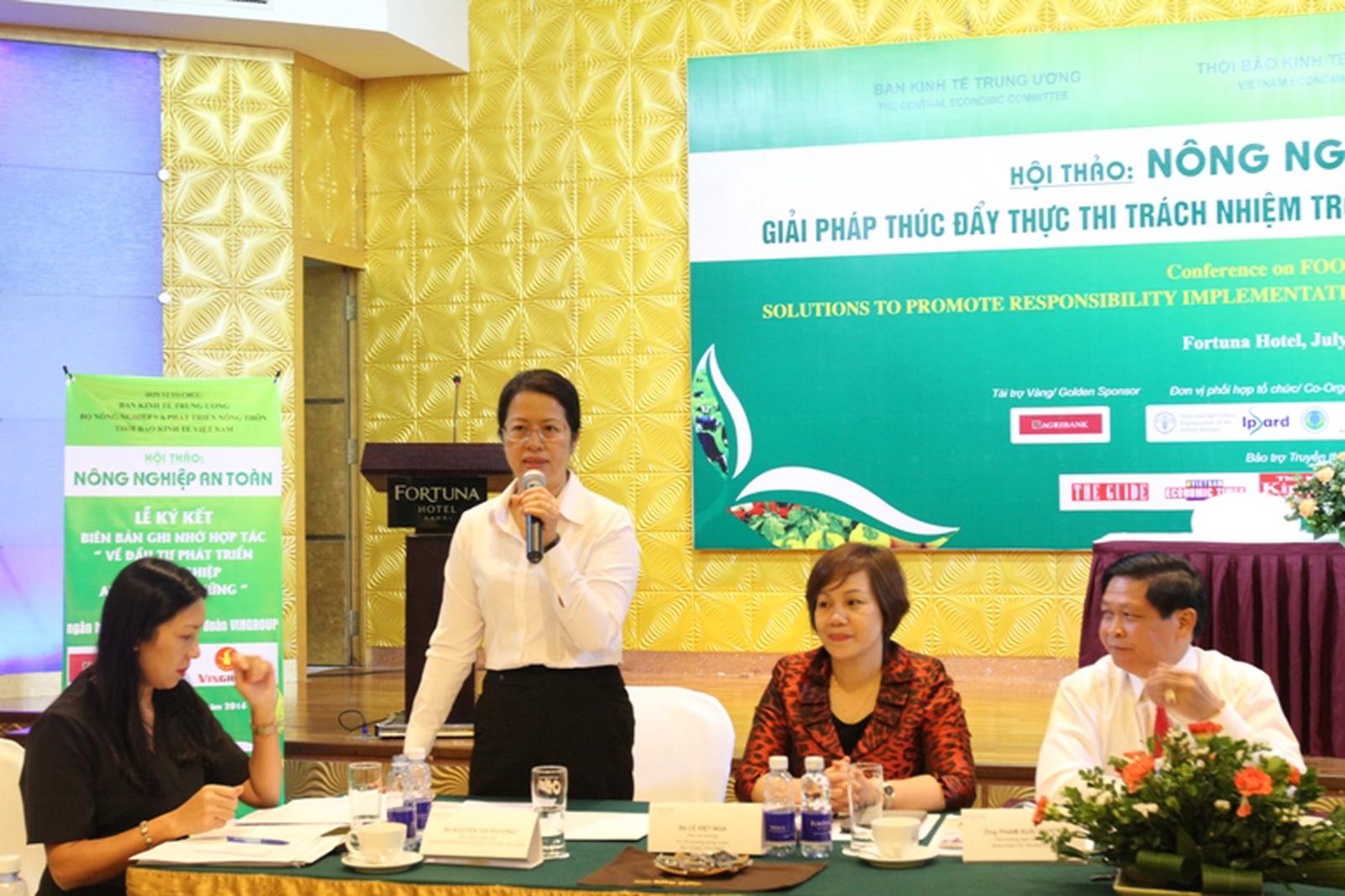 Đồng hành cùng sự kiện này, đại diện lãnh đạo Agribank, bà Nguyễn Thị Phượng - Phó Tổng Giám đốc tham gia chủ trì và có bài tham luận “Tiếp sức cho nông nghiệp thay đổi tư duy và hành động vì một nền nông nghiệp an toàn và phát triển bền vững”. Cũng tại Hội thảo này, Agribank và Tập đoàn Vingroup đã ký kết thỏa thuận hợp tác “Về đầu tư phát triển nông nghiệp an toàn, bền vững”.