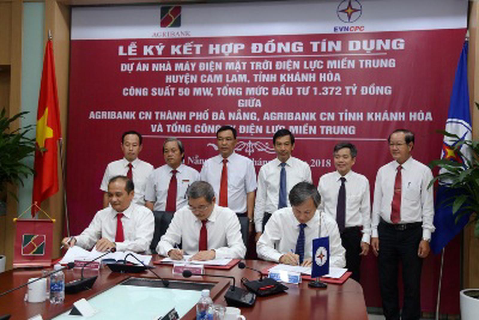 Năm 2018, Agribank và Tổng Công ty Điện lực miền Trung (EVNCPC) đã ký kết Hợp đồng tín dụng đầu tư xây dựng Dự án Nhà máy Điện mặt trời Điện lực miền Trung (tại xã Cam An Bắc, huyện Cam Lâm, tỉnh Khánh Hòa) có tổng vốn đầu tư xây dựng là 1.372 tỷ đồng. Trong đó, vốn vay từ Agribank chiếm 58,5% tổng chi phí đầu tư trước thuế (tương đương 735 tỷ đồng); vốn đối ứng của EVNCPC là trên 521 tỷ đồng, chiếm 41,5% tổng chi phí đầu tư trước thuế. Dự án có tổng công suất 50MW, mỗi năm cung cấp sản lượng điện bình quân từ 87,598GWh đến 98,147GWh vào hệ thống điện quốc gia, góp phần cung cấp điện năng cho hệ thống điện cũng như tăng tỷ lệ nguồn năng lượng tái tạo trong cơ cấu nguồn điện của Việt Nam…