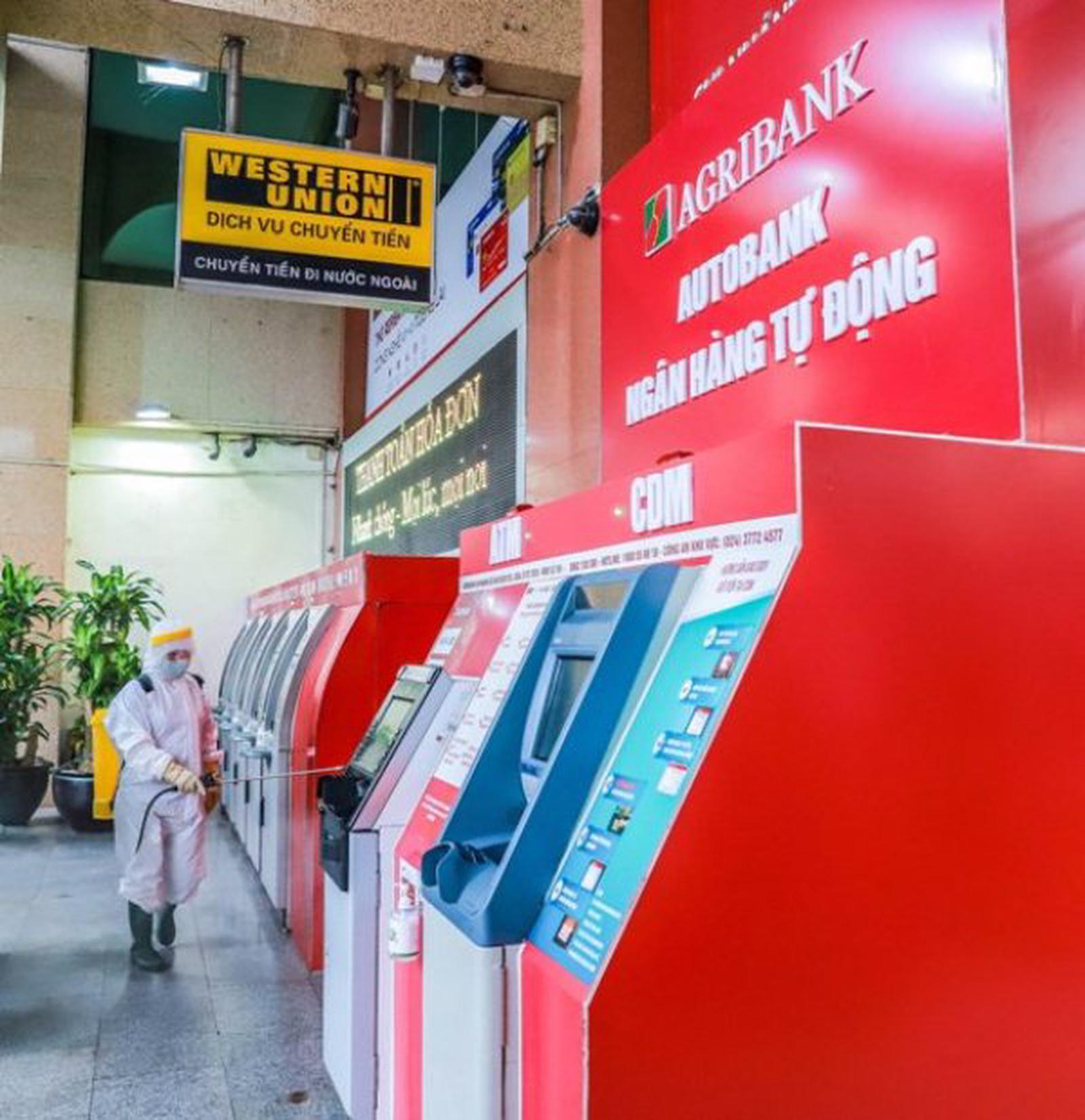 Công tác khử khuẩn nơi giao dịch được các chi nhánh thực hiện thường xuyên
