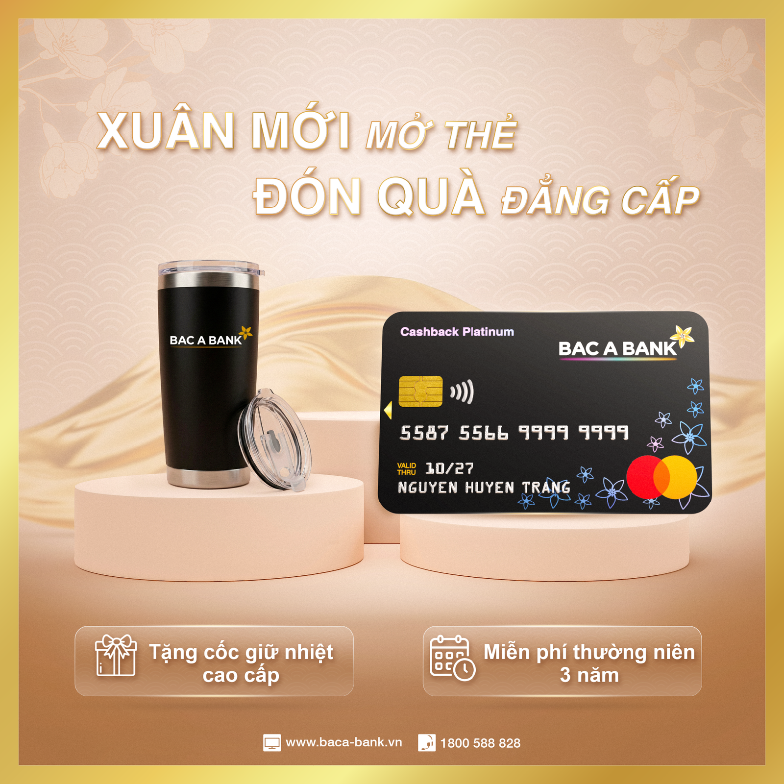 Theo đó, 300 khách hàng mở mới thẻ và đạt mốc chi tiêu tối thiểu 1.000.000 VND nhanh nhất trong vòng 30 ngày kể từ ngày phát hành thẻ sẽ nhận được cốc giữ nhiệt cao cấp dung tích 500ml đáp ứng đa dạng mục đích sử dụng - món quà tri ân biểu trưng cho sự đồng hành tận tâm của BAC A BANK cùng khách hàng trong năm mới Bính Ngọ.