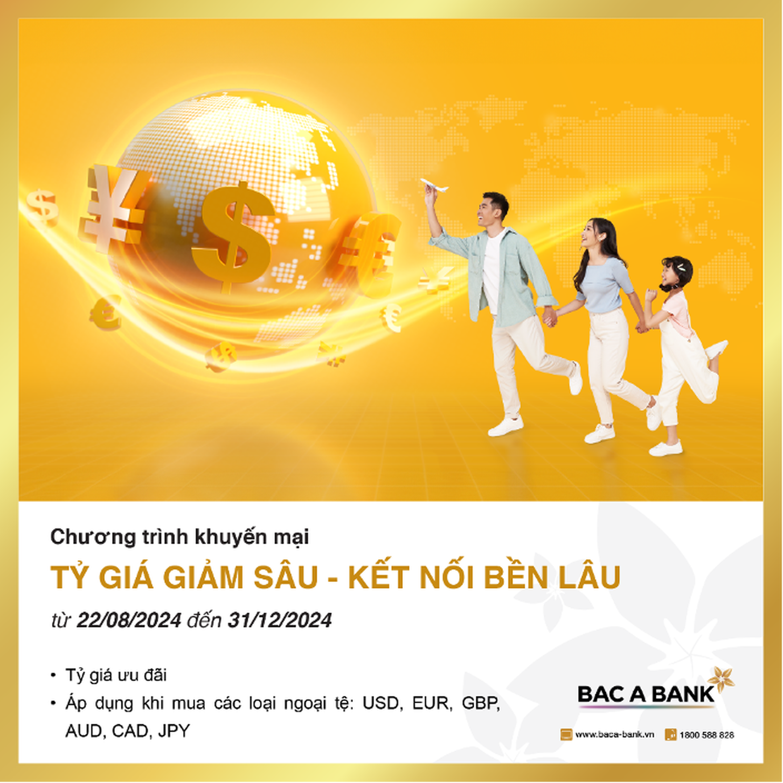 (Thanh tra) - Mừng sinh nhật tuổi 30, Ngân hàng TMCP Bắc Á (BAC A BANK) triển khai chương trình “Tỷ giá giảm sâu - Kết nối bền lâu” dành cho khách hàng cá nhân và doanh nghiệp có giao dịch mua ngoại tệ, chuyển tiền quốc tế tại BAC A BANK.