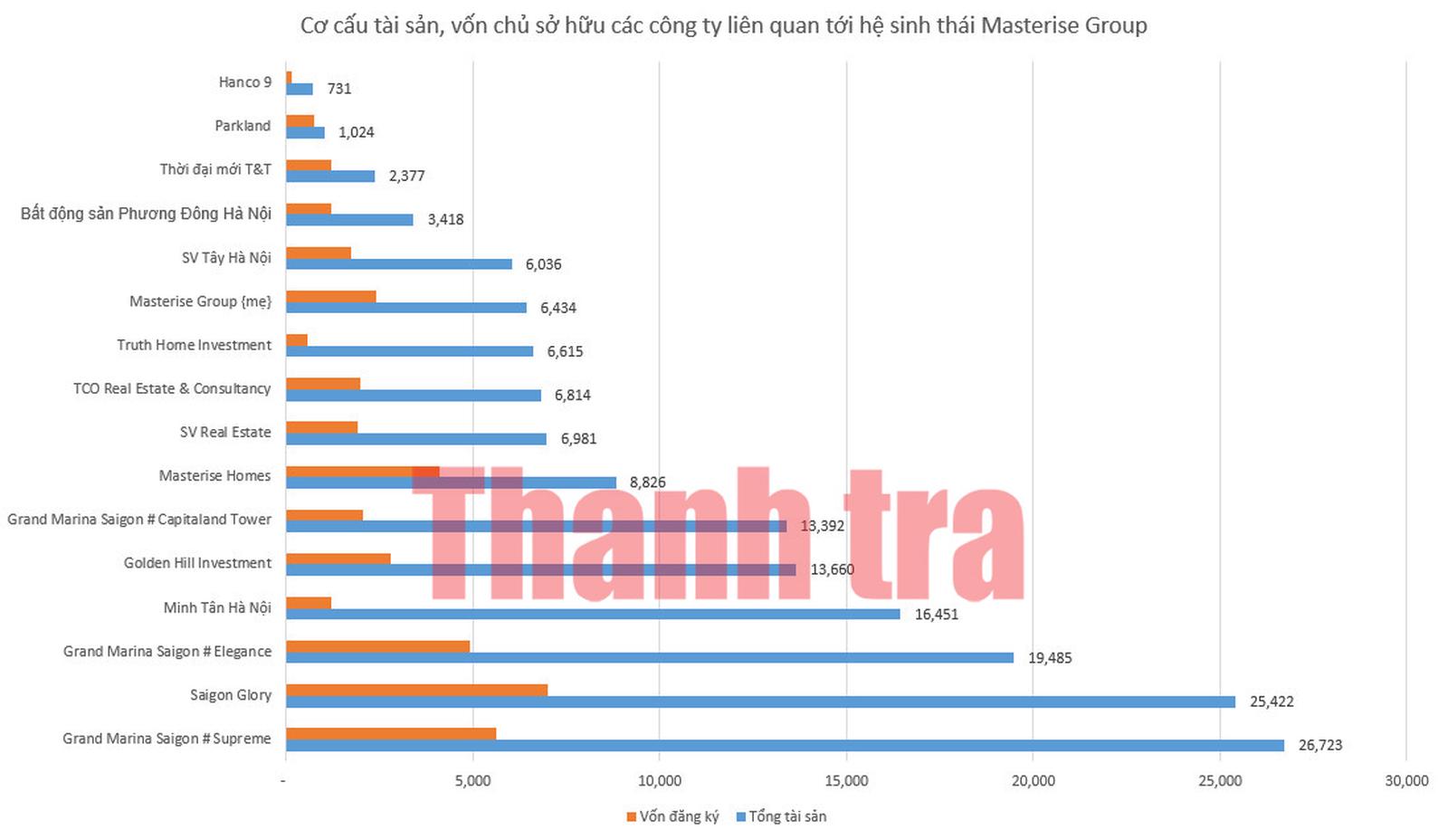 Tổng quy mô tổng tài sản cộng ngang của một số doanh nghiệp có liên quan đến "hệ sinh thái Masterise Group" lên tới gần 160.000 tỷ đồng (gần 7 tỷ USD) vào thời điểm kết thúc năm 2020.