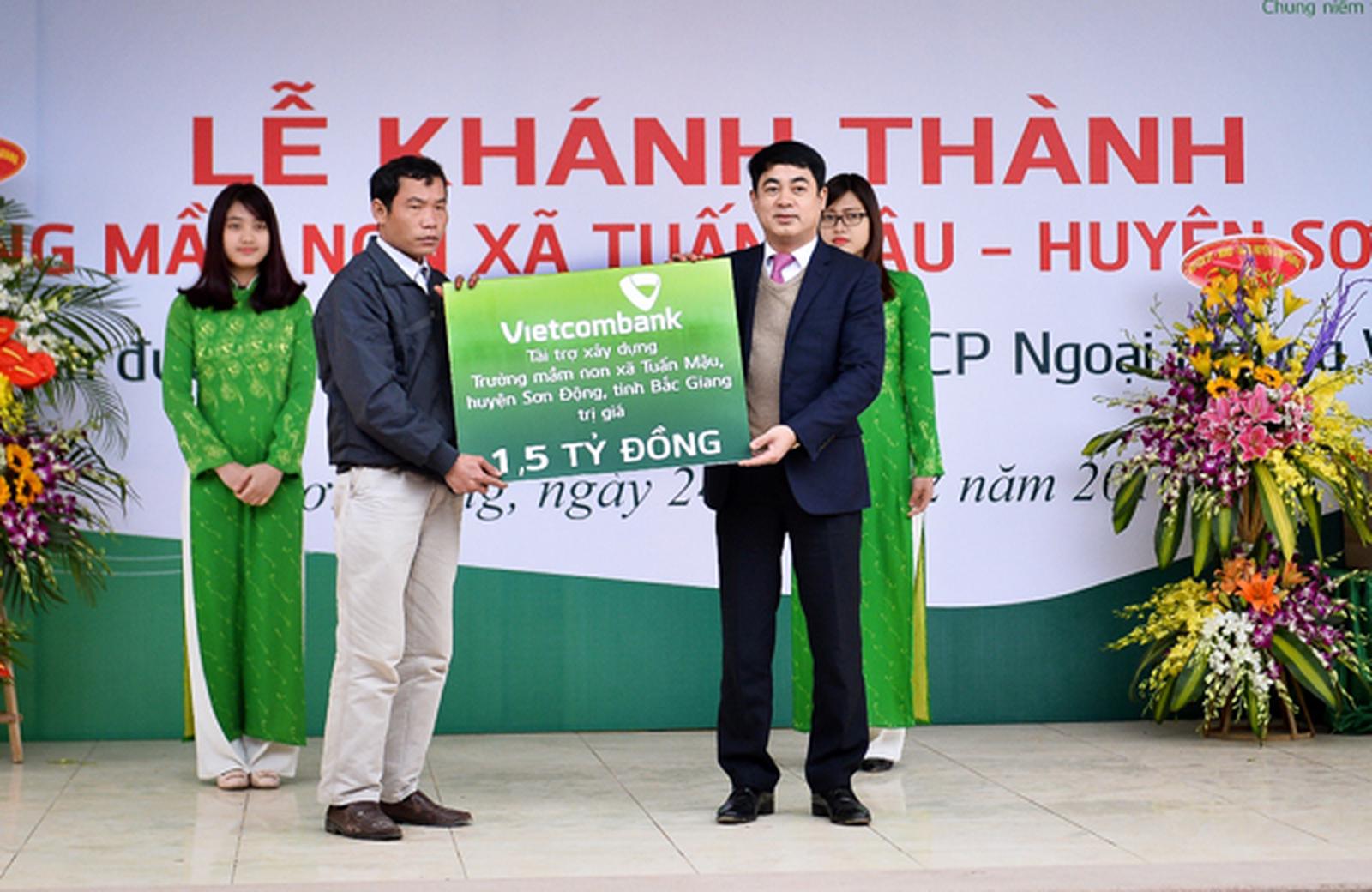 Sáng ngày 24/2/2016, tại tỉnh Bắc Giang, Ngân hàng TMCP Ngoại thương Việt Nam (Vietcombank) đã phối hợp với địa phương tổ chức Lễ khánh thành Trường mầm non xã Tuấn Mậu, huyện Sơn Động. Đây là ngôi trường do Vietcombank tài trợ 1,5 tỷ đồng kinh phí xây dựng.