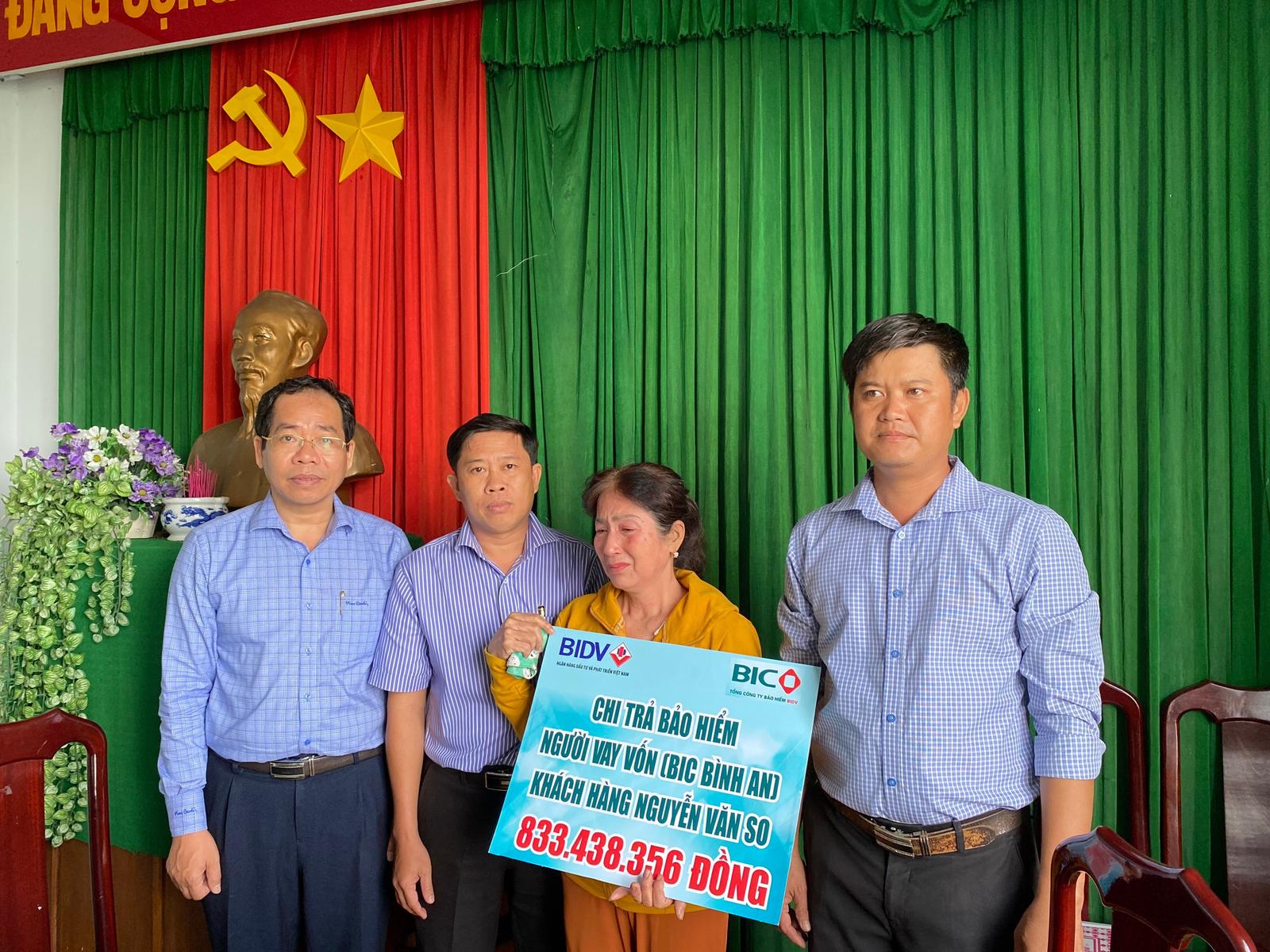 Tổng số tiền chi trả cho gia đình ông So là 833.438.356 đồng. Theo đó, BIC sẽ thay mặt gia đình khách hàng thanh toán cho Chi nhánh BIDV Mỹ Tho số tiền 804.909.590 đồng (bao gồm cả khoản vay và trợ cấp lãi vay). Số tiền còn lại được BIC trao trực tiếp cho gia đình ông So.