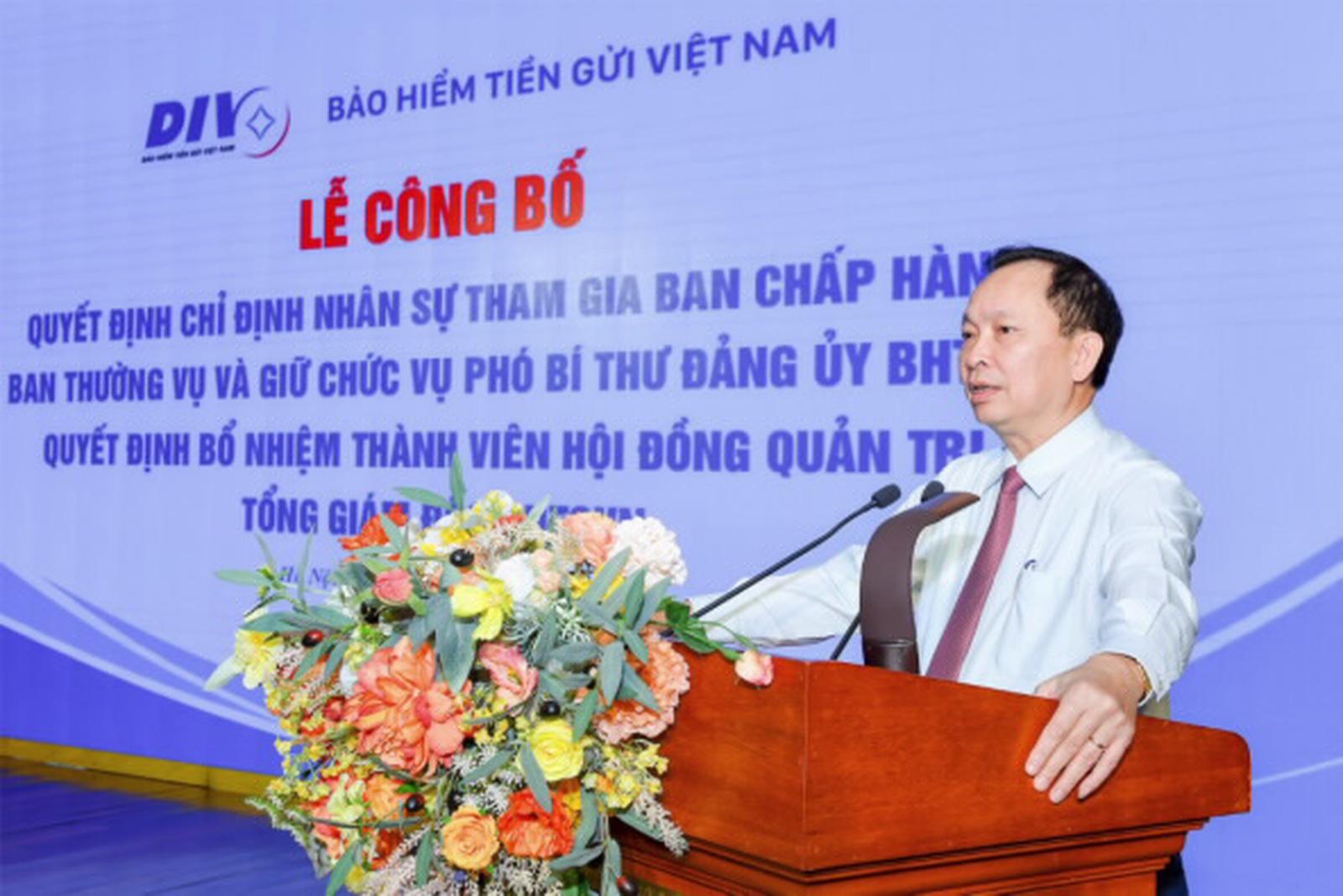Tại buổi lễ, ông Trần Anh Tuấn, Vụ trưởng Vụ Tổ chức Cán bộ, NHNN đã công bố quyết định của Thống đốc NHNN bổ nhiệm ông Đặng Duy Cường - Phó Vụ trưởng, Vụ Tổ chức Cán bộ, NHNN giữ chức Thành viên Hội đồng Quản trị, Tổng Giám đốc BHTGVN.