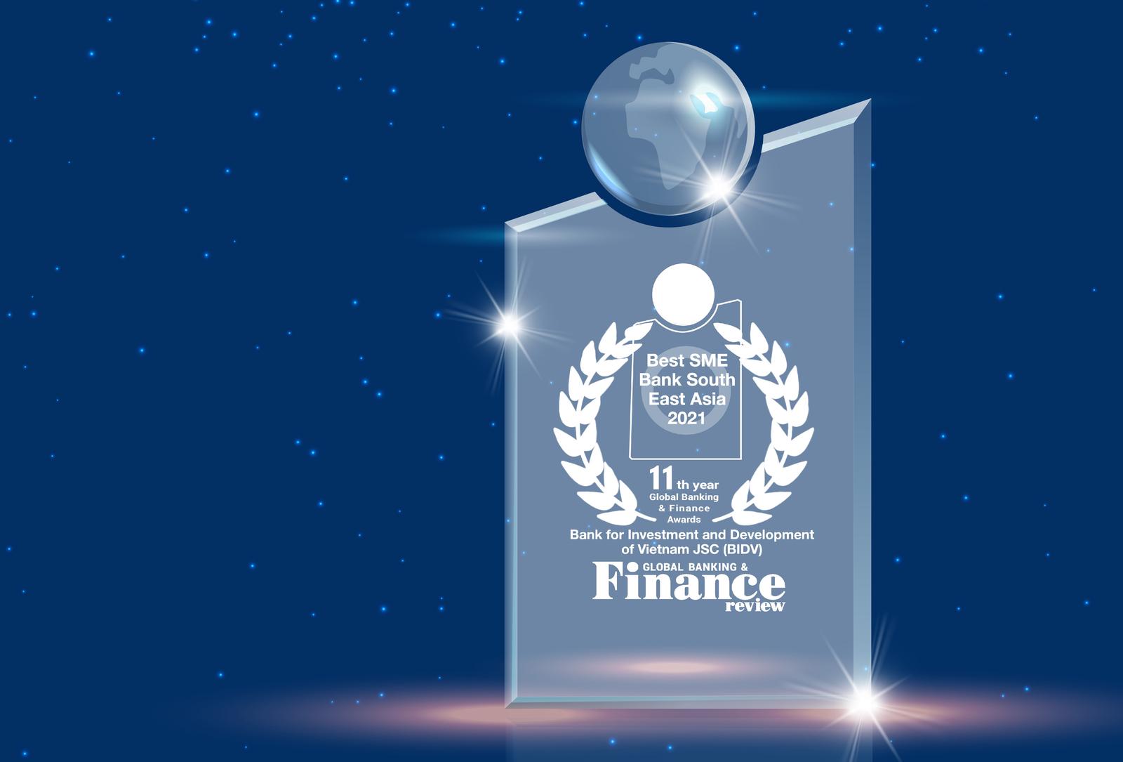 Trong phần đánh giá về BIDV, Tạp chí GBAF khẳng định:“BIDV là ngân hàng dẫn đầu Việt Nam về các giải pháp tài chính toàn diện hỗ trợ cho sự thành công của các DNNVV. Trong các năm qua, BIDV đã đẩy mạnh tín dụng xanh bền vững, triển khai nhiều chương trình vay vốn với lãi suất ưu đãi cho DNNVV, đầu tư công nghệ phát triển ngân hàng số”.