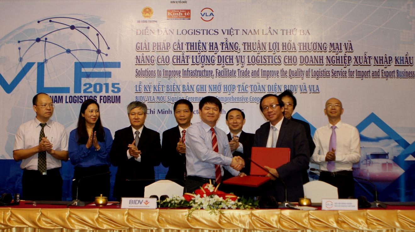 (Thanh tra) - Hôm nay, trong khuôn khổ Diễn đàn Logistics Việt Nam lần thứ 3 với chủ đề “Giải pháp cải thiện hạ tầng, thuận lợi hóa thương mại và nâng cao chất lượng dịch vụ Logistics cho các doanh nghiệp xuất nhập khẩu” được tổ chức tại TP.HCM, Ngân hàng TMCP Đầu tư và Phát triển Việt Nam (BIDV) và Hiệp hội Doanh nghiệp dịch vụ Logistics Việt Nam (VLA) đã ký kết Biên bản ghi nhớ hợp tác toàn diện giai đoạn 2015-2020.