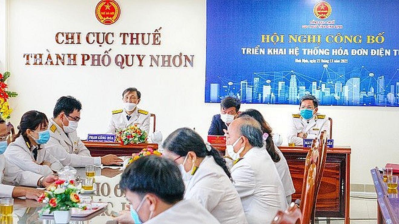 Hội nghị Công bố triển khai hệ thống hóa đơn điện tử tại điểm cầu Chi cục Thuế TP Quy Nhơn. Ảnh: Internet