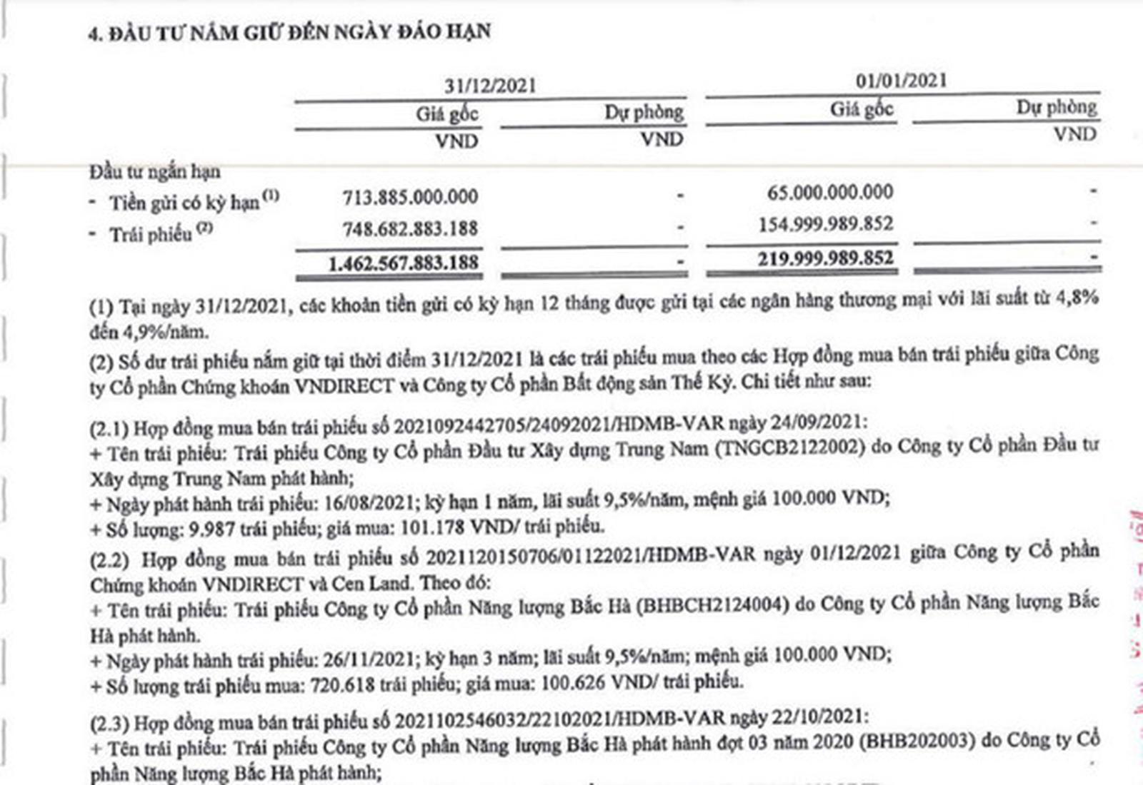 Doanh thu tài chính của Cen Land trong quý 4/2021 cao gần gấp 8 lần cùng kỳ, đến từ lãi tiền gửi và lãi đầu tư trái phiếu