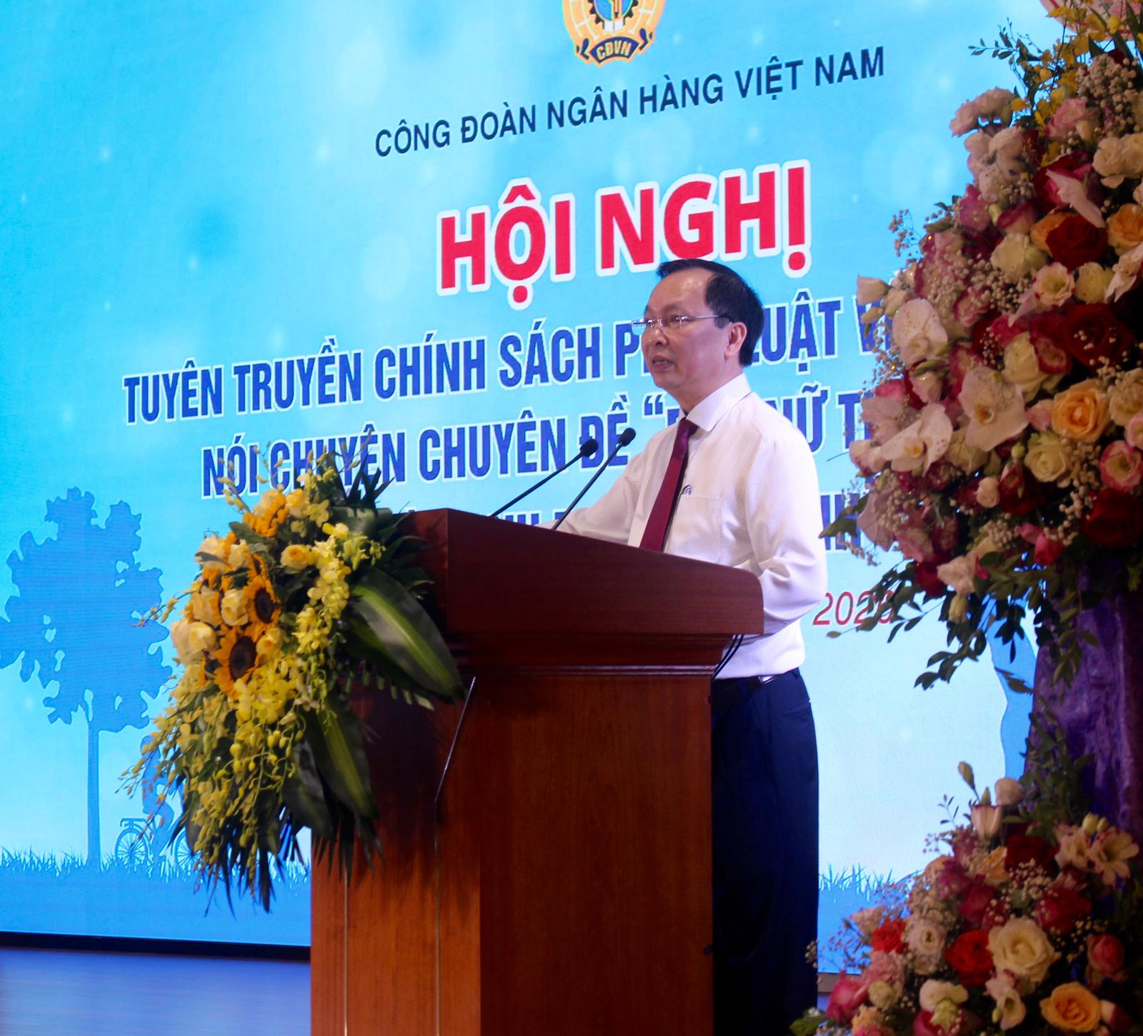 Phó Thống đốc Thường trực Ngân hàng Nhà nước, Chủ tịch Công đoàn Ngân hàng Việt Nam Đào Minh Tú phát biểu tại hội nghị (TK)
