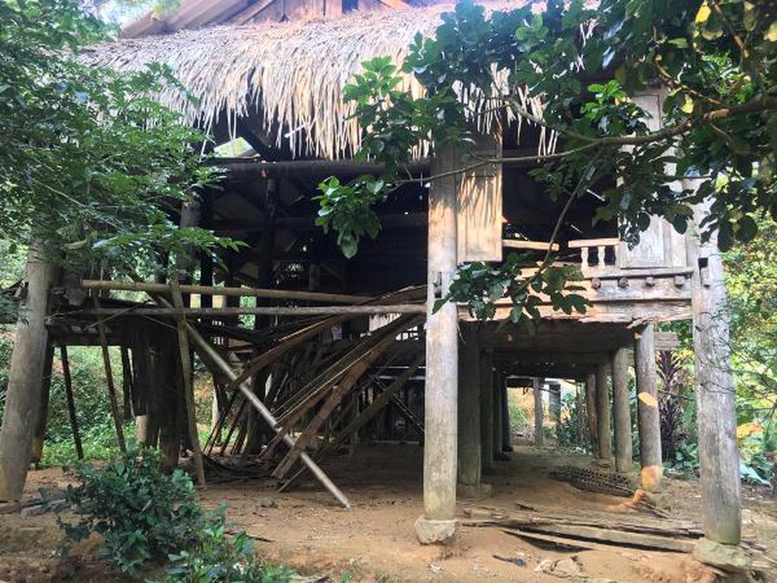 Căn nhà sàn của bà Hoa xuống cấp trầm trọng. Ảnh: Bùi Bình