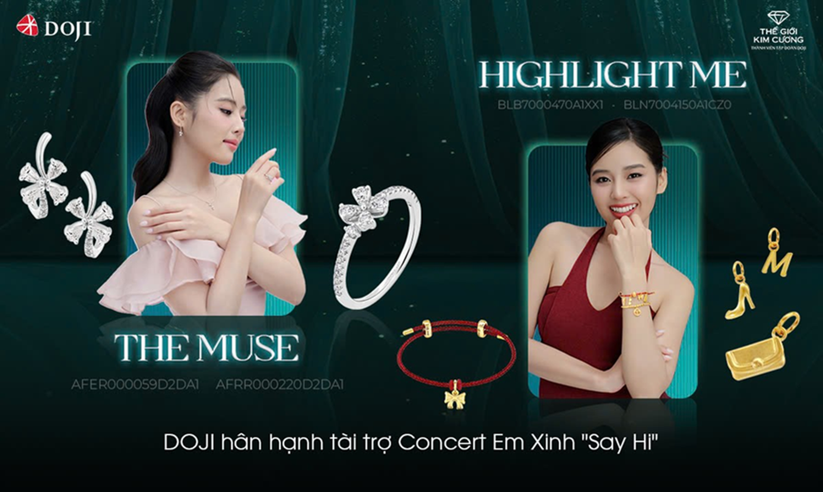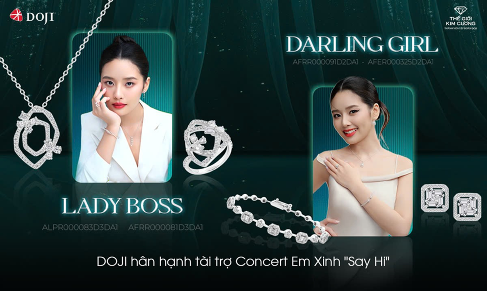 Sự đồng điệu trong định hướng đã đưa Tập đoàn DOJI, với danh hiệu Nhà tài trợ Bạc, đến với concert Em Xinh “Say Hi”. Giống như âm nhạc, trang sức không chỉ là phụ kiện làm đẹp mà còn là lời tuyên ngôn mạnh mẽ về cá tính. Cả hai cùng hướng đến việc truyền cảm hứng, khuyến khích giới trẻ tự tin tỏa sáng và dẫn dắt những xu hướng mới.