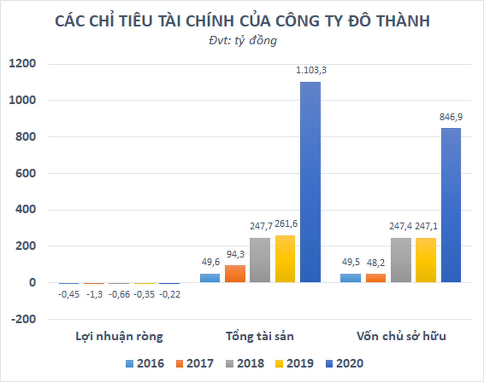 Từ khi thành lập đến năm 2020, Đô Thành gần như “nằm im” khi không phát sinh một đồng doanh thu nào. Dù vậy, công ty vẫn phải gánh các khoản chi phí dẫn đến thua lỗ triền miên trong suốt giai đoạn 5 năm (2016-2020) tuy nhiên số tiền không quá lớn chỉ từ khoảng 200 triệu đến 1,3 tỷ đồng.
