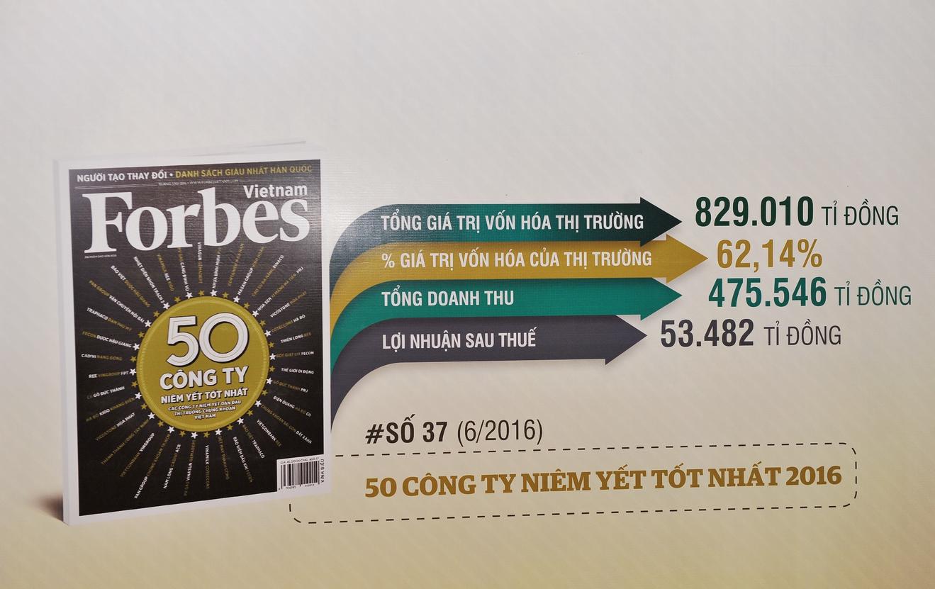 Danh sách xếp hạng mà Forbes đưa ra hầu hết là các công ty dẫn đầu trong từng lĩnh vực kinh doanh, có nhiều đóng góp vào sự phát triển kinh tế - xã hội thông qua đổi mới sản phẩm, công nghệ, sáng tạo trong cung ứng dịch vụ. Theo dữ liệu thống kê, 50 công ty trong danh sách có giá trị vốn hóa 829.010 tỷ đồng, chiếm 62,14 % giá trị vốn hóa thị trường (theo mức giá đóng cửa phiên giao dịch ngày 16/05/2016). Tổng giá trị doanh thu của 50 công ty đạt 475.546 tỷ đồng, bằng 37,77% của toàn thị trường. Lợi nhuận sau thuế đạt 53.482 tỷ đồng, chiếm 53,08% toàn thị trường.