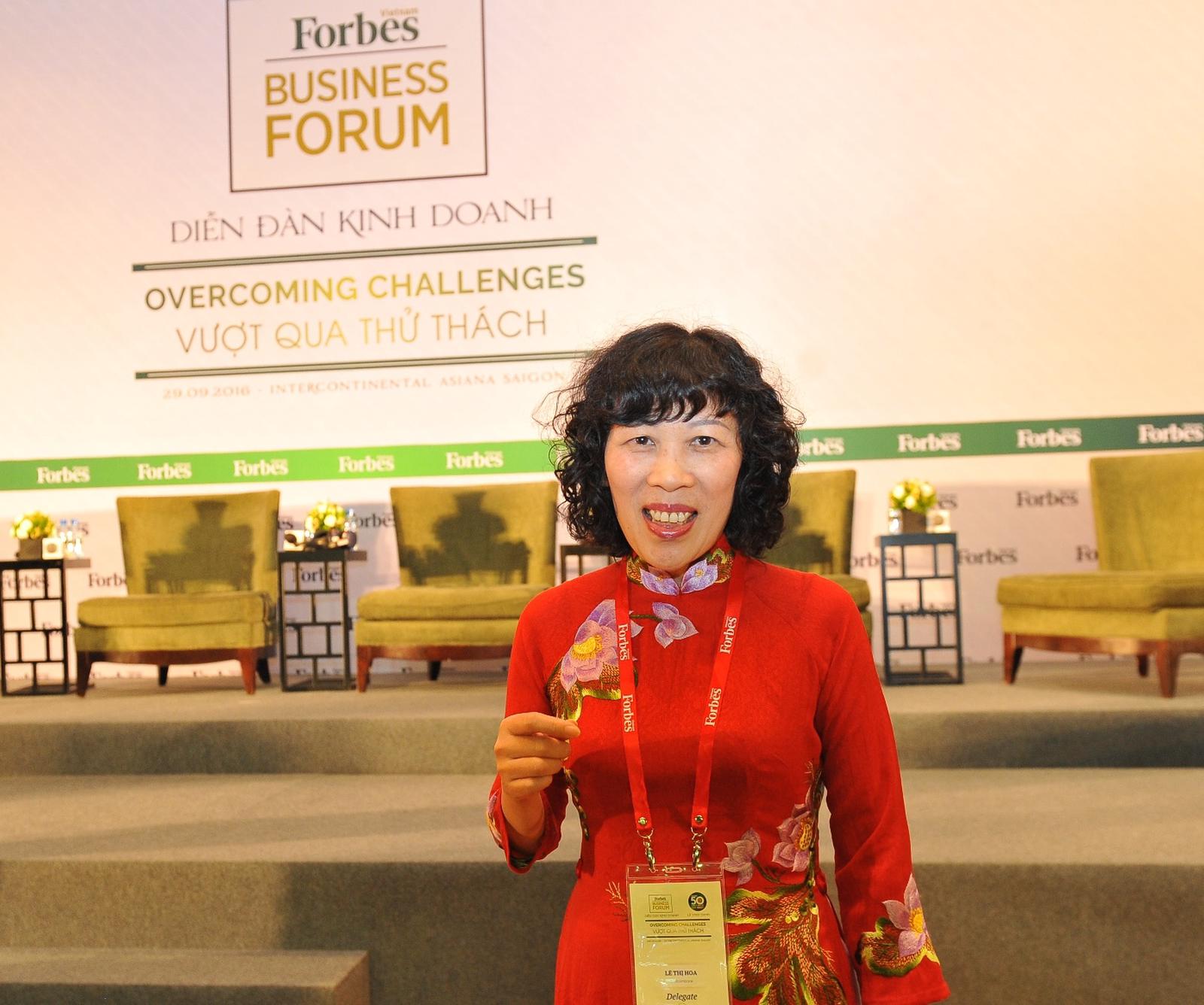 Bà Lê Thị Hoa - Ủy viên Hội đồng quản trị Vietcombank tham dự Lễ vinh danh của Forbes và chia sẻ thông tin tại diễn đàn kinh doanh do do Forbes Việt Nam tổ chức