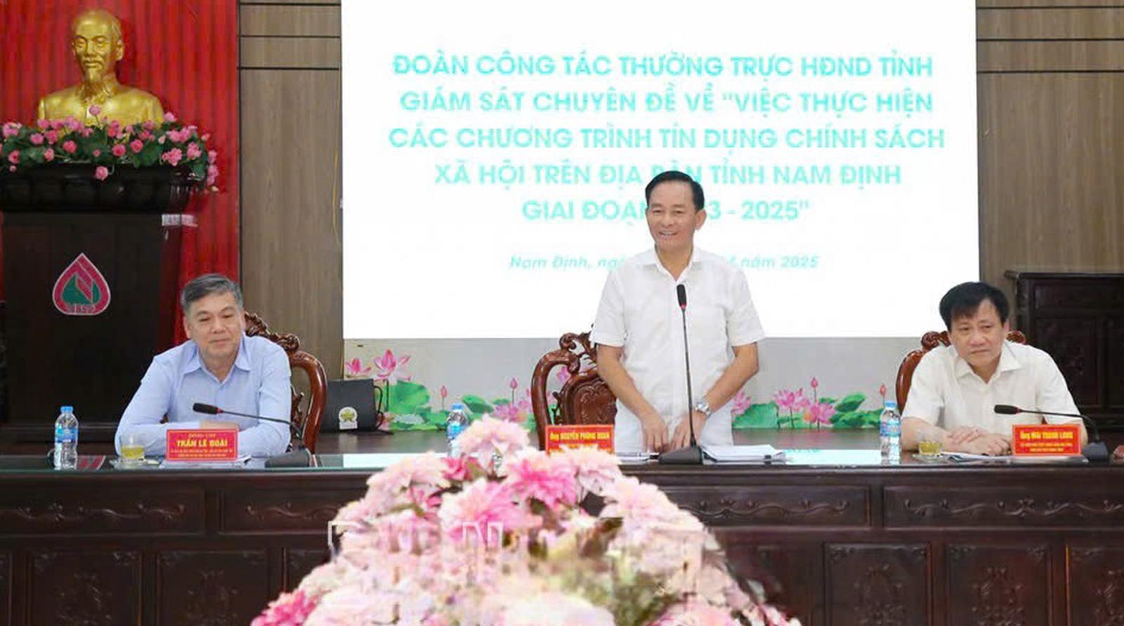 (Thanh tra) - Chiều 17/4, thực hiện Chương trình giám sát chuyên đề “Việc thực hiện các chương trình tín dụng chính sách xã hội trên địa bàn tỉnh Nam Định giai đoạn 2023-2025”, Thường trực HĐND tỉnh đã tiến hành giám sát tại Chi nhánh Ngân hàng Chính sách xã hội (NHCSXH) tỉnh.