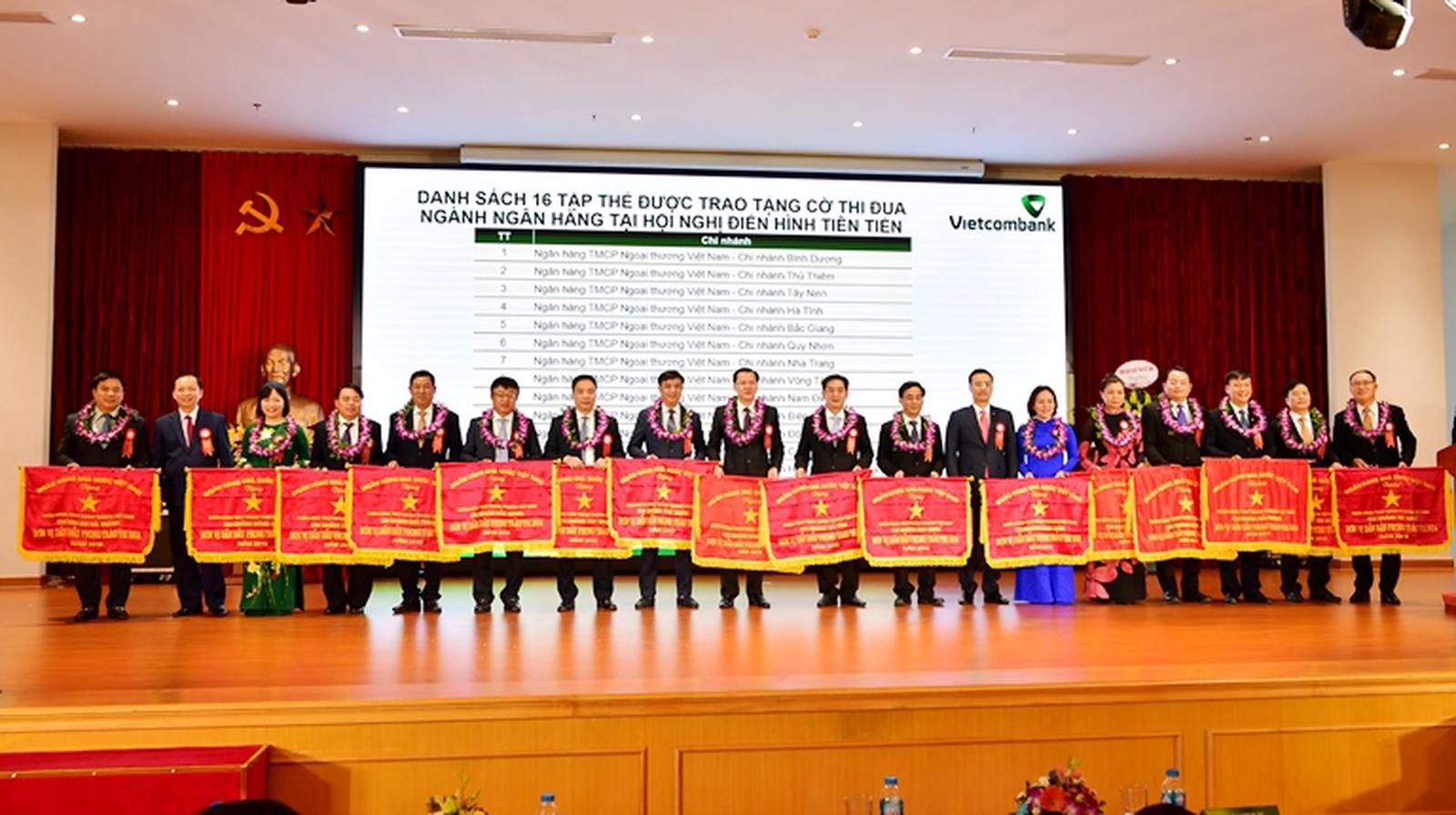 Báo cáo thành tích của công tác TĐ-KT tại Hội nghị, đ/c Đào Minh Tuấn – Phó Tổng Giám đốc, Chủ tịch Công đoàn Vietcombank cho biết: Thấm nhuần lời dạy của Bác Hồ kính yêu trong công tác thi đua, công tác TĐ-KT trong 5 năm qua của hệ thống Vietcombank đã có những chuyển biến tích cực, tạo được khí thế thi đua sôi nổi trong toàn hệ thống, từ đó động viên được toàn thể cán bộ, nhân viên người lao động nỗ lực phấn đấu hoàn thành xuất sắc nhiệm vụ được giao. Công tác TĐ-KT đã trở thành hoạt động thường xuyên ở mỗi đơn vị và từng cá nhân; công tác khen thưởng đã trở thành nguồn cổ vũ, động viên quan trọng để cán bộ và người lao động hăng say làm việc. Các phong trào thi đua đã tập trung được trí tuệ và sức mạnh khơi dậy truyền thống yêu Ngành, yêu nghề của mỗi cán bộ và người lao động; đồng thời bám sát yêu cầu, nhiệm vụ chính trị của đơn vị trong từng giai đoạn, từng thời kỳ. Trong giai đoạn 2015 - 2019, Vietcombank đã có 1.072 tập thể được vinh danh tập thể lao động xuất sắc, 6.155 cá nhân đạt được danh hiệu Chiến sỹ thi đua cấp cơ sở và 653 tập thể, 8.640 cá nhân được nhận giấy khen của Chủ tịch HĐQT về việc hoàn thành xuất sắc nhiệm vụ. Kết quả thi đua cấp Ngành Ngân hàng: 95 Cờ thi đua của NHNN (95 tập thể); 334 danh hiệu Chiến sỹ thi đua cấp ngành; 1284 Bằng khen của Thống đốc NHNN (235 tập thể, 1049 cá nhân). Kết quả thi đua cấp Chính phủ: 15 Cờ thi đua của Thủ tướng Chính phủ (15 tập thể); 5 danh hiệu Chiến sỹ thi đua toàn quốc (5 cá nhân); 28 Bằng khen của Thủ tướng Chính phủ (3 tập thể, 25 cá nhân). Kết quả thi đua cấp Nhà nước: 5 Huân chương Lao động hạng nhất (3 tập thể, 2 cá nhân); 22 Huân chương Lao động hạng II (11 tập thể, 11 cá nhân); 11 Huân chương Lao động hạng III (5 tập thể, 6 cá nhân).
