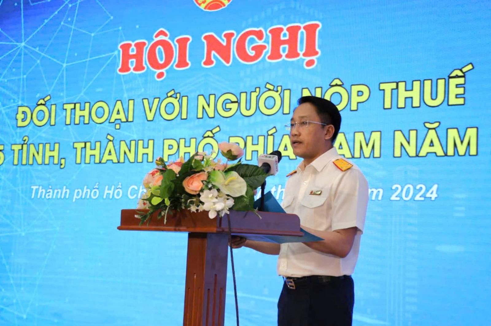 Tham dự và chỉ đạo hội nghị đối thoại có Tổng cục trưởng Tổng cục Thuế Mai Xuân Thành; điều hành phiên đối thoại sáng nay là Phó Tổng cục trưởng Tổng cục Thuế Mai Sơn; tham dự và trực tiếp đối thoại với DN và NNT có đại diện lãnh đạo các đơn vị chức năng thuộc Tổng cục Thuế và lãnh đạo 5 cục thuế của 5 tỉnh, thành phố phía Nam.