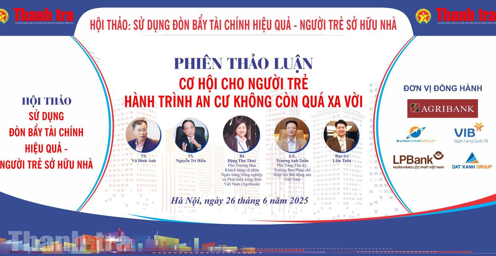 (Thanh tra) - Sáng 26/6/2025, tại Hà Nội, Báo Thanh tra đã phối hợp tổ chức hội thảo với chủ đề “Sử dụng đòn bẩy tài chính hiệu quả – Cơ hội an cư cho người trẻ”. Hội thảo ghi nhận sự tham gia của các chuyên gia tài chính – bất động sản, cơ quan quản lý nhà nước và đại diện hệ thống ngân hàng, trong đó nổi bật là sự đồng hành và tài trợ của Ngân hàng Agribank – một bước đi thiết thực nhằm hiện thực hóa giấc mơ “an cư lạc nghiệp” cho thế hệ trẻ.