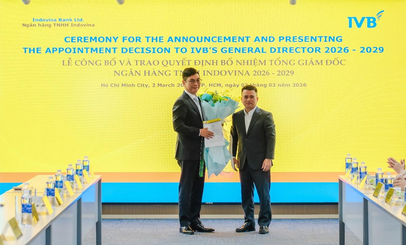 Ngày 02/03/2026, tại Hội sở chính, Ngân hàng TNHH Indovina (IVB) đã tổ chức Lễ công bố và trao quyết định bổ nhiệm Tổng Giám đốc mới. Theo đó, Chủ tịch Hội đồng Thành viên IVB - Ông Nguyễn Anh Tuấn đã chính thức trao quyết định bổ nhiệm Ông Lu, Wei-Chieh giữ chức vụ Tổng Giám đốc IVB kể từ ngày 02/03/2026.