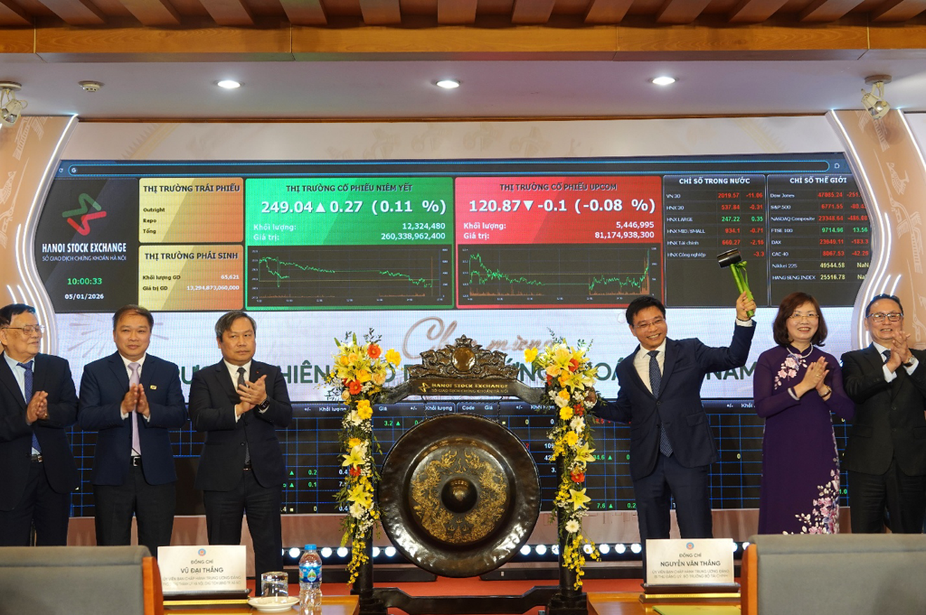 (Thanh tra) - Sáng ngày 5/1/2026, tiếng cồng khai trương phiên giao dịch đầu năm đã vang lên tại Sở Giao dịch Chứng khoán Hà Nội (HNX).
