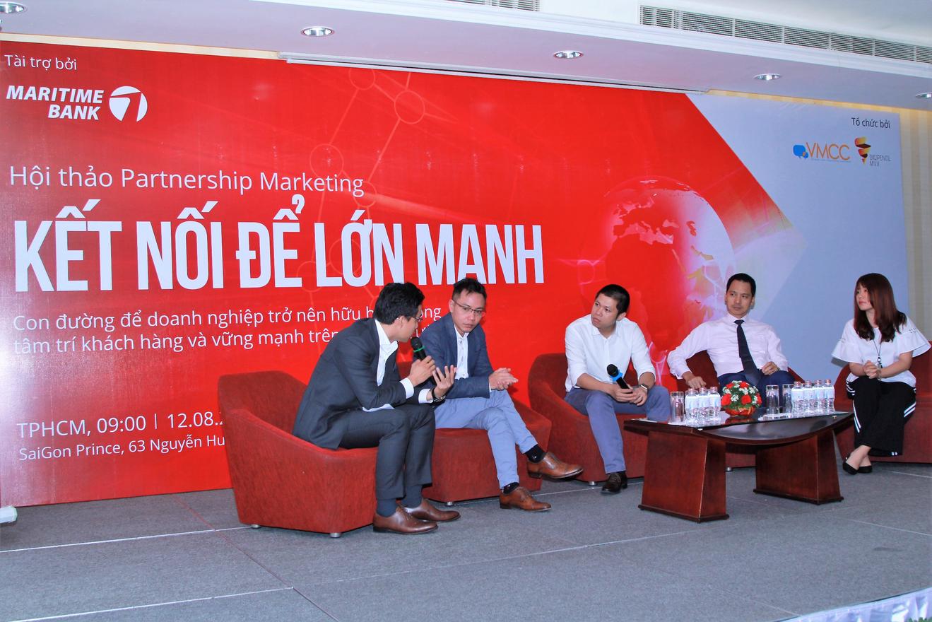 Các doanh nghiệp chia sẻ khó khăn và giải pháp tìm khách hàng tại buổi hội thảo Kết nối để tồn tại do Maritime bank phối hợp cùng VMCC và DigiPencil tổ chức