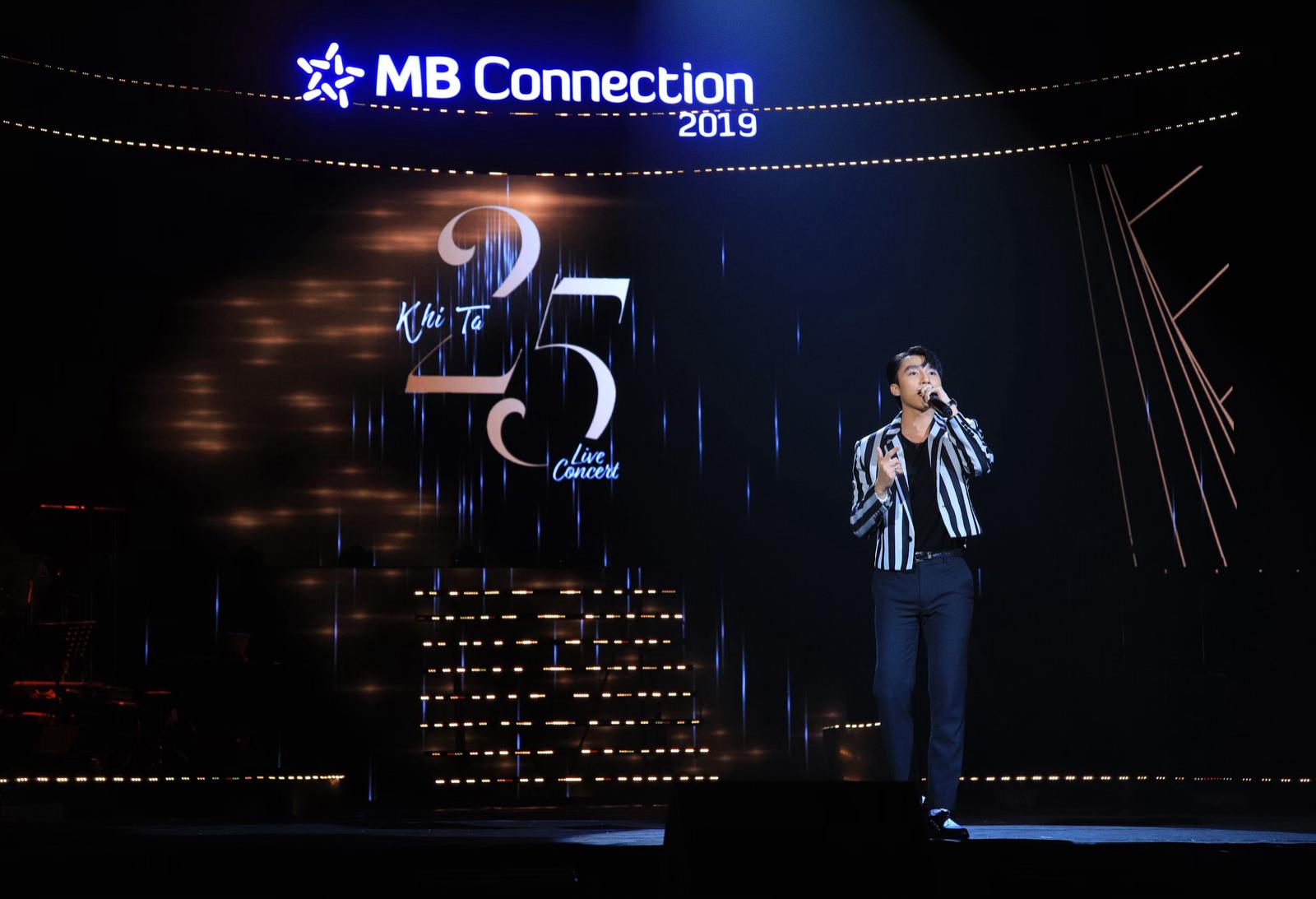 Đêm nhạc “MB Connection 2019 - Khi ta 25” tổ chức ngày 14/12 tại không gian ấm cúng của Nhà hát Hòa Bình, trong sự cộng hưởng của chuỗi các sự kiện kỷ niệm 25 năm thành lập MB.Đêm nhạc có sự góp mặt của các ca sỹ, nghệ sỹ nổi tiếng như Lam Trường, Thu Phương, Sơn Tùng M-TP, Lệ Quyên, Vũ Cát Tường. Với bàn tay tài hoa của đạo diễn âm nhạc Hồ Hoài Anh và Nguyễn Hữu Vượng, những giai điệu quen thuộc được làm mới tạo hiệu ứng bất ngờ và đầy cảm xúc cho gần 2.000 khán giả.Vũ Cát Tường mở màn cùng liên khúc “Hãy yêu nhau đi” - “Để gió cuốn đi” trước khi bùng cháy với series “Cô gái ngày hôm qua”, “Yêu xa” và “Don’t you go” Tại Sự kiện “MB Connection 2019 – Khi ta 25”, ông Hà Trọng Khiêm - Phó Tổng Giám đốc MB chia sẻ, trên hành trình 25 năm từ một Ngân hàng chỉ với 25 người và với 20 tỷ vốn điều lệ, đến nay MB tự hào là một tập đoàn tài chính đa năng, luôn lấy khách hàng là trung tâm của mọi chiến lược phát triển, nỗ lực mang đến dịch vụ toàn diện trong mọi lĩnh vực tài chính – ngân hàng – bảo hiểm, là một trong 5 Ngân hàng thương mại uy tín nhất Việt Nam. Mang tới bữa tiệc âm nhạc ấm áp, chuyên nghiệp, MB gửi lời cảm ơn tới sự đồng hành của khách hàng và thể hiện đã chuẩn bị kỹ càng để đưa ra thị trường giải pháp tài chính 360 độ, vượt trên những giới hạn mà một Ngân hàng có thể mang tới. Hợp tác với Bordier&Cie Singapore, ngân hàng tư nhân có trụ sở tại Geneva - Thụy Sỹ, MB thể hiện rõ hướng đi chiến lược phát triển và triển khai dịch vụ khách hàng cá nhân cao cấp lần đầu tiên có mặt tại Việt Nam (private banking) với tiêu chuẩn 6 sao, không chỉ dừng lại ở phạm vi trong nước mà trải dài tới các châu lục.Sự kết hợp thú vị của Vũ Cát Tường và Lệ Quyên trong liên khúc “Em ơi” và hit “Giấc mơ có thật” MB Connection 2019 khép lại với dư âm và cảm xúc lắng đọng tâm trí khách hàng sau hai live concert tại Hà Nội và Hồ Chí Minh. Ngay sau khi “chiêu đãi” những bữa tiệc âm nhạc ấn tượng, trong thời gian gần nhất, MB Private sẽ ra mắt cùng những dịch vụ tài chính ưu việt, hứa hẹn mang lại sự thịnh vượng, giàu có cho khách hàng và gia đình trong tương lai.Lam Trường, Thu Phương song ca “Thôi anh hãy về” – ca khúc bằng đúng số tuổi của MBSơn Tùng M-TP xuất hiện cùng nguồn năng lượng lan tỏa trong loạt hit sôi động-Thật trùng hợp chàng ca sỹ này cũng có năm sinh cùng MB. Nguyễn Điểm