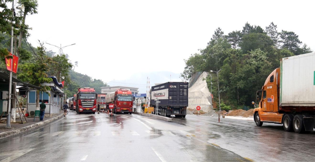 Phương tiện chở hàng hóa xuất nhập khẩu qua cửa khẩu Quốc tế Hữu Nghị. Ảnh: BLS