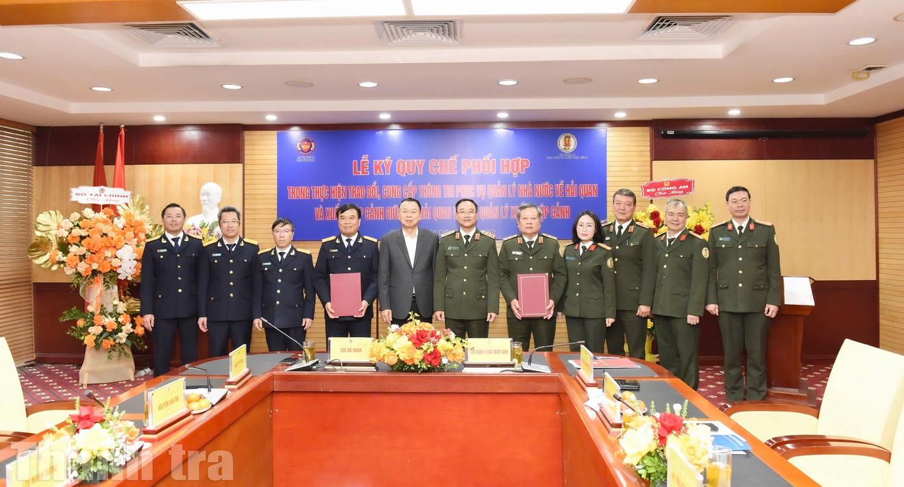 Ký kết Quy chế phối hợp trong thực hiện trao đổi, cung cấp thông tin phục vụ quản lý nhà nước về hải quan và xuất nhập cảnh giữa Cục Hải quan và Cục Quản lý xuất nhập cảnh. Ảnh: Duy Cường
