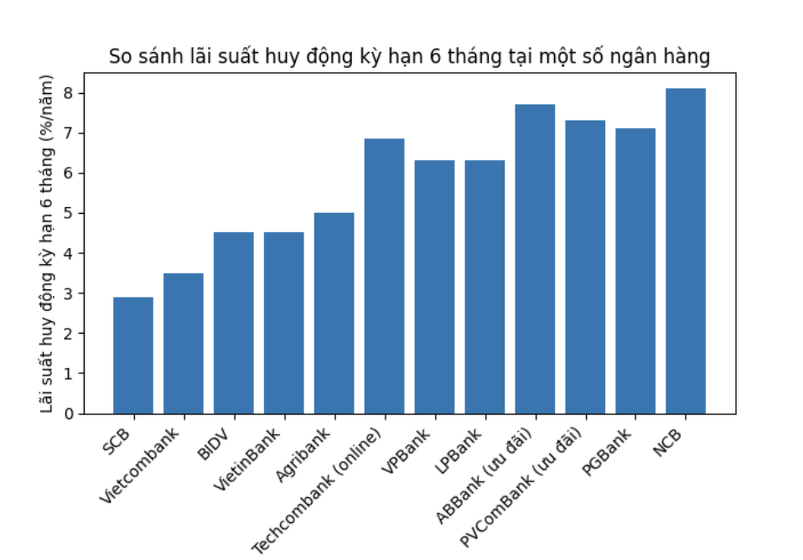 Tổng hợp lãi suất huy động tại một số ngân hàng.