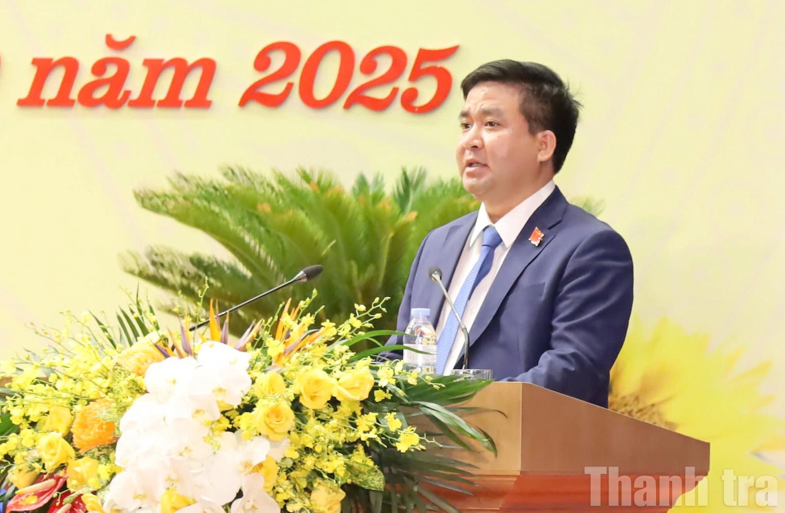 Ông Vương Trinh Quốc, Trưởng Ban Quản lý Khu kinh tế tỉnh Lào Cai trình bày tham luận về Xây dựng cửa khẩu thông minh, nâng cao kim ngạch xuất nhật khẩu tại Đại hội đại biểu Đảng bộ tỉnh Lào Cai lần thứ I, nhiệm kỳ 2025 - 2030. Ảnh : Bùi Bình