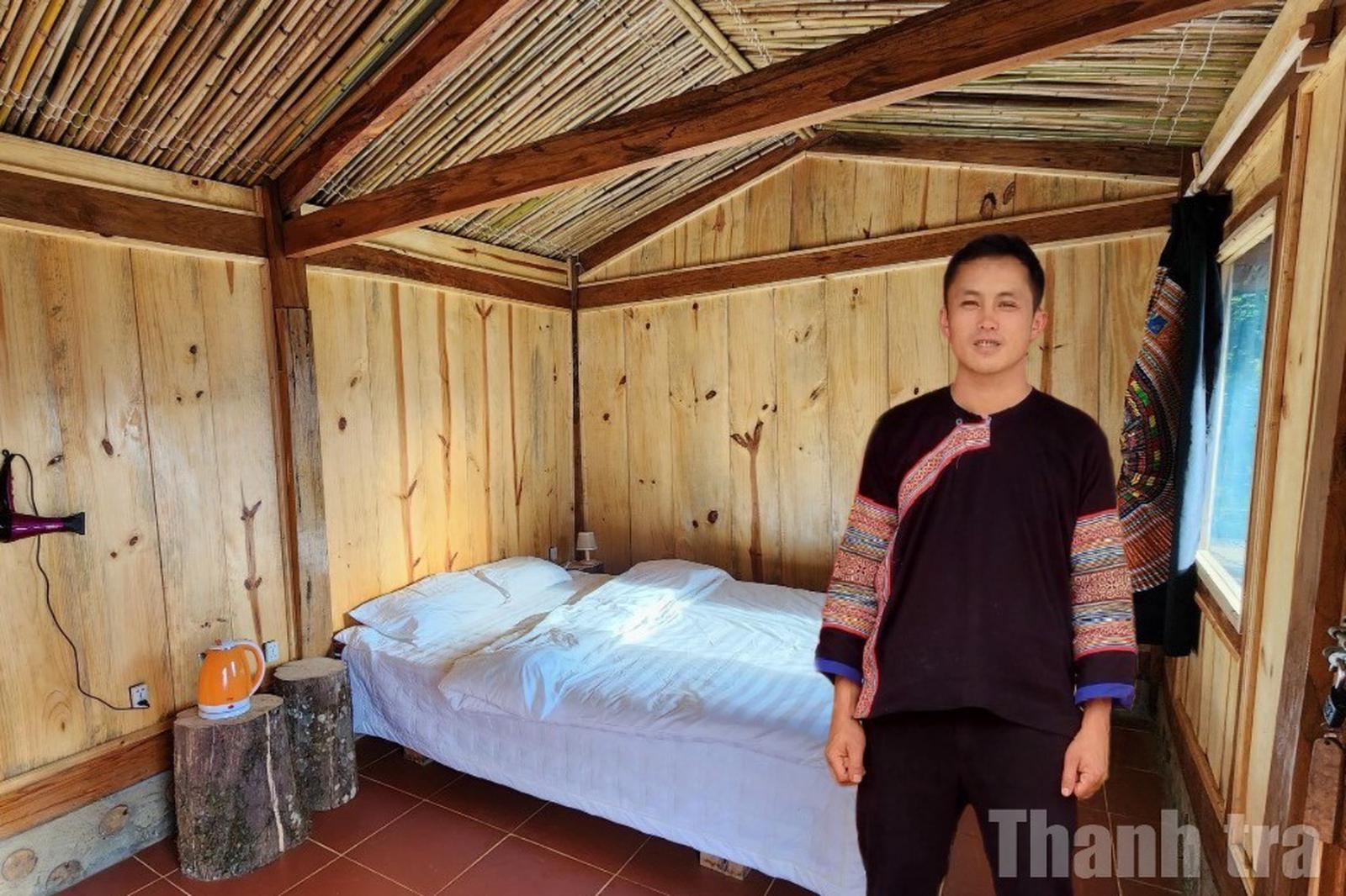 Anh Hờ A Dì, dân tộc Mông, chủ Bungalow tại thôn La Pán Tẩn chọn cách giữ gìn bản sắc văn hóa dân tộc trong khai thác du lịch. Ảnh: Bình Yên